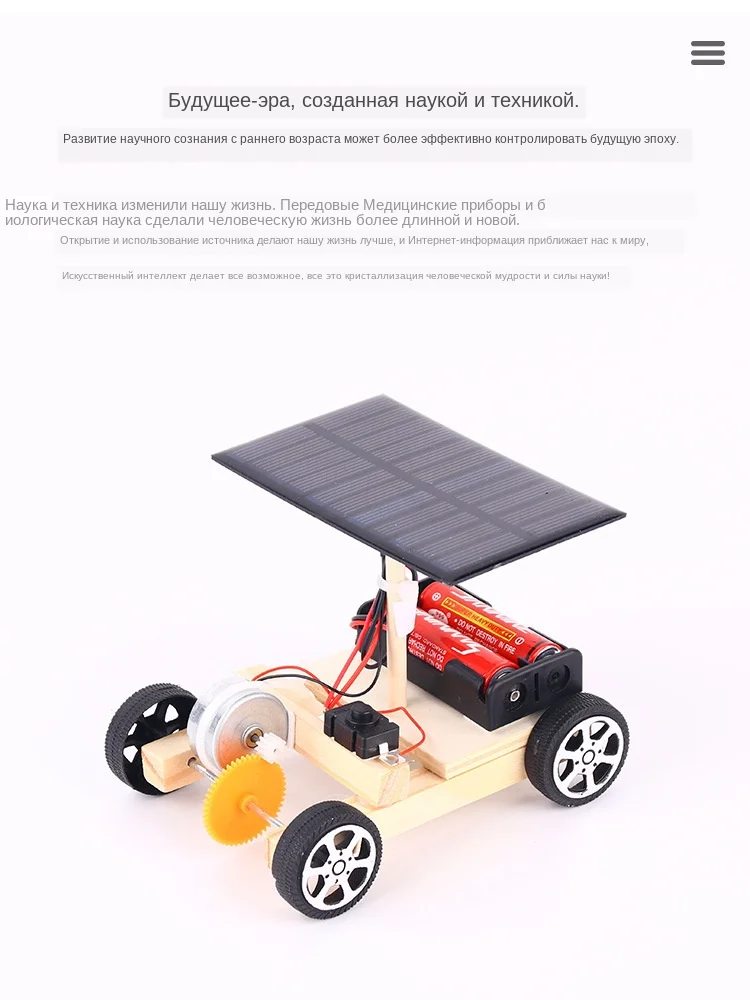 Батарея в комплект не входит Подробная информация о продукте Название: солнечный гибридный привод автомобиля Размер: Общая длина около 13 см высотой около 9 см Цвет: цветные детали распределяются случайным образом Принцип: фотоэлектрического преобразования Упаковка: самоуплотняющийся мешок внутренняя упаковка, картонная внешняя упаковка, требуется сборка Дружеское напоминание: Необходимо настроить, не поддерживать возврат и обмен, не снимать Авторское право находится в собственности студии и предназначено только для обучения, коллекция, Классное, послешкольное использование, ограничение соревнований и коммерческое использование. Самостоятельные инструменты: 2 секции 5 батарей, ножницы, зажигалка (для сжигания резьбы)
