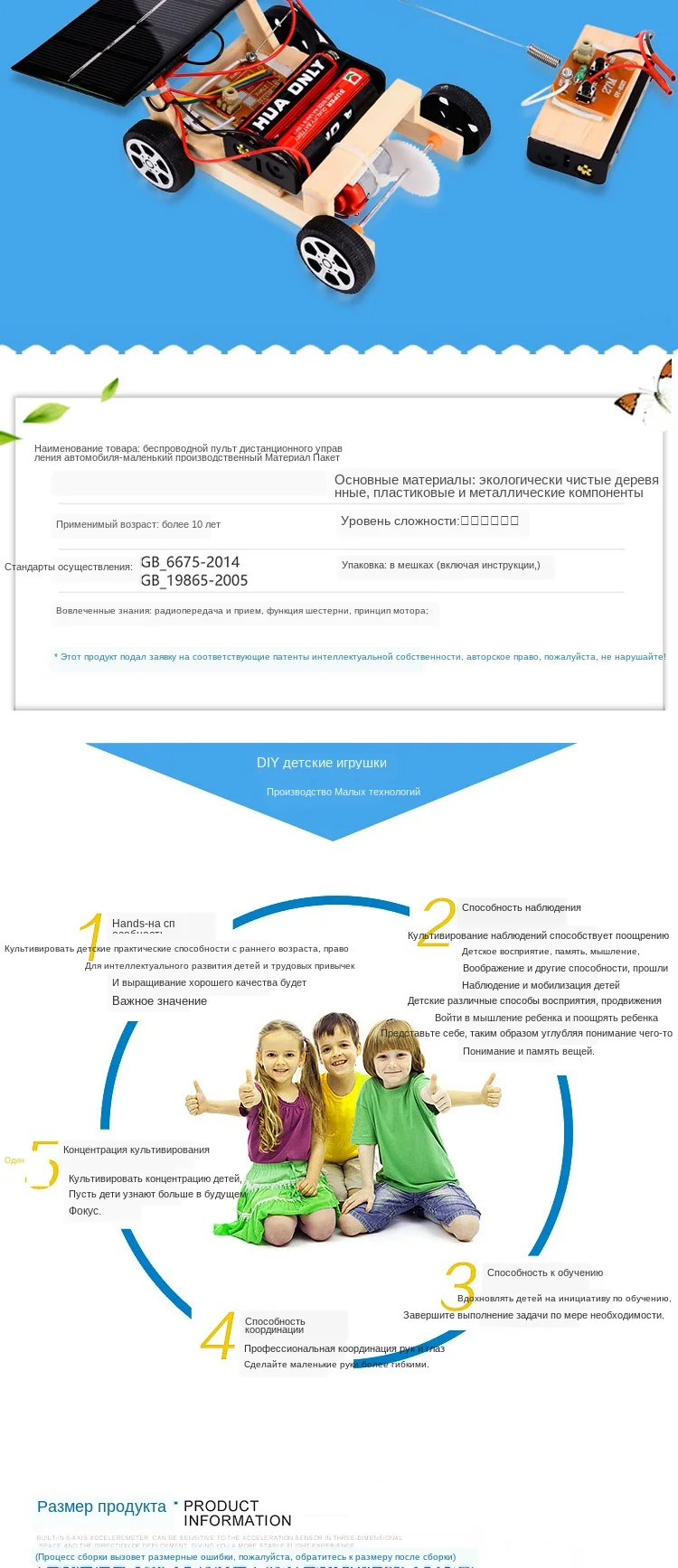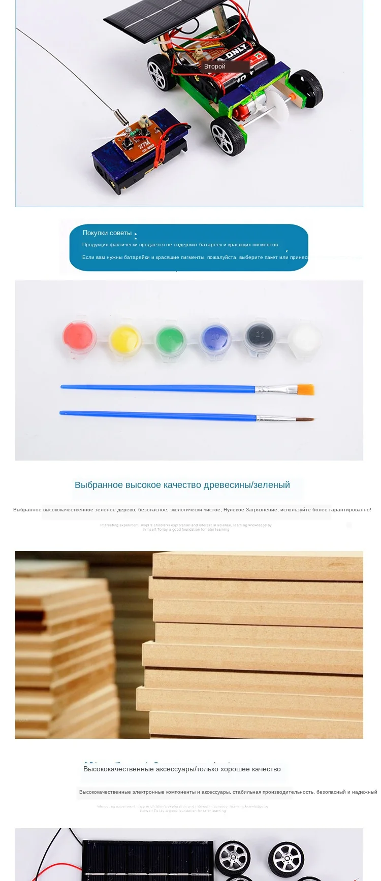 Батарея в комплект не входит Информация о продукте Материалы: дерево, Упаковка товара: пластиковый карман из полипропилена Рекомендуемый возраст: от 4 лет Особенности: Очень забавные развивающие игрушки, дети могут собрать их с родителей. Улучшите Детские ручные возможности. При включении автомобиль может работать на foor. Дети могут изучить физику, играя в эту поделку. Дети также могут рисовать на автомобиле, чтобы сделать уникальный игрушечный автомобиль. Любезно напоминание: Пожалуйста, убедитесь, что шаги и аксессуары были понятны перед началом сборки. Если Игрушечная машина не запустилась, пожалуйста, проверьте, хватает ли энергии на батарейках, и провода подключены правильно. Будет лучше, если родители могут собрать вместе с детьми. Название продукта: беспроводной Радиоуправляемый автомобиль модель-комплект для сборки Цвет изделия: натуральный цвет Подходящий возраст: старше 10 лет Упаковка товара: opp Ziplock мешок (материал упаковки, клей, инструкции) Советы: не содержит две батарейки типа АА и пигменты.