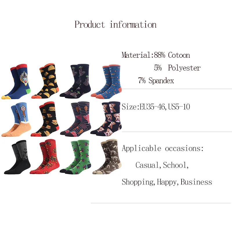 Our socks are mainly made of cotton. The quality is guaranteed! If you have any questions, you can contact us first! Our service tenet: to make the most fashionable and most comfortable and cheapest socks!