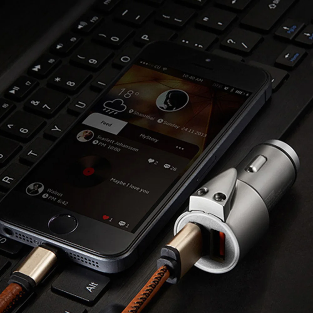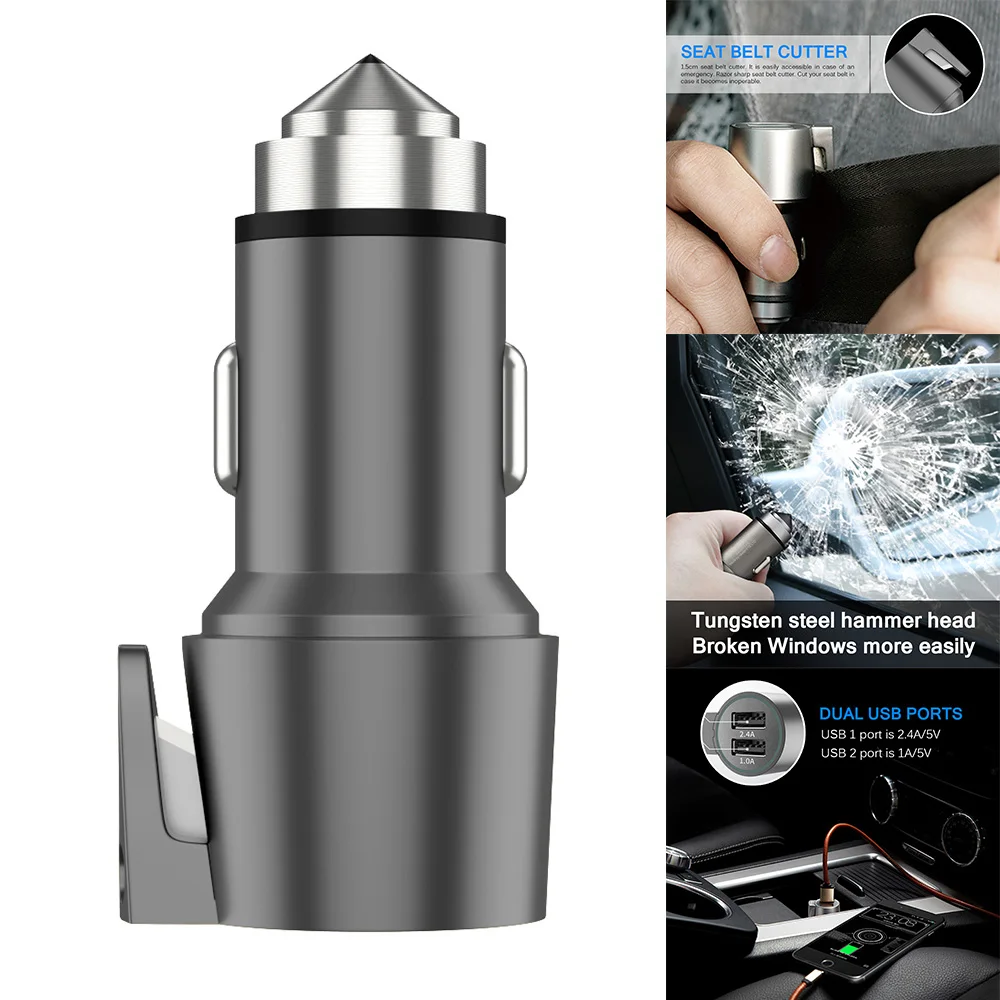 Тип: 3 в 1 Автомобильное зарядное устройство и аварийный молоток и резак ремня безопасности
