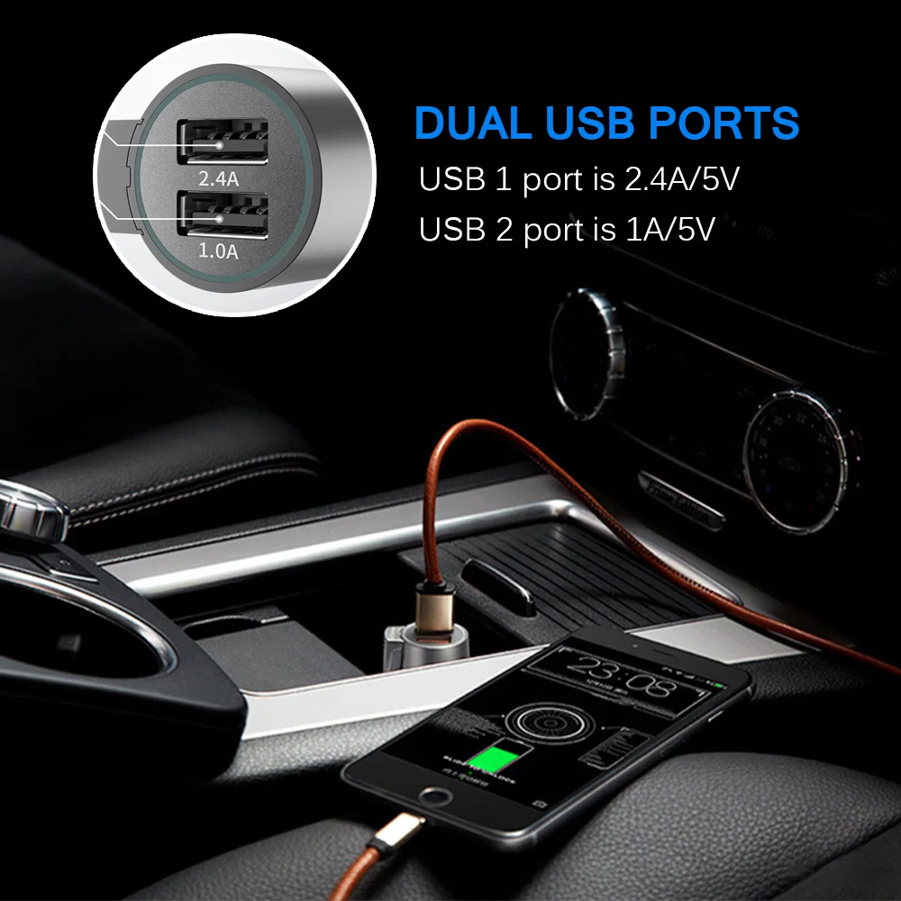 Подходит для большинства автомобильных зажигалок 12-24 В.Работает со всеми usb-устройствами, включая смартфоны и планшеты на базе Android и Apple.