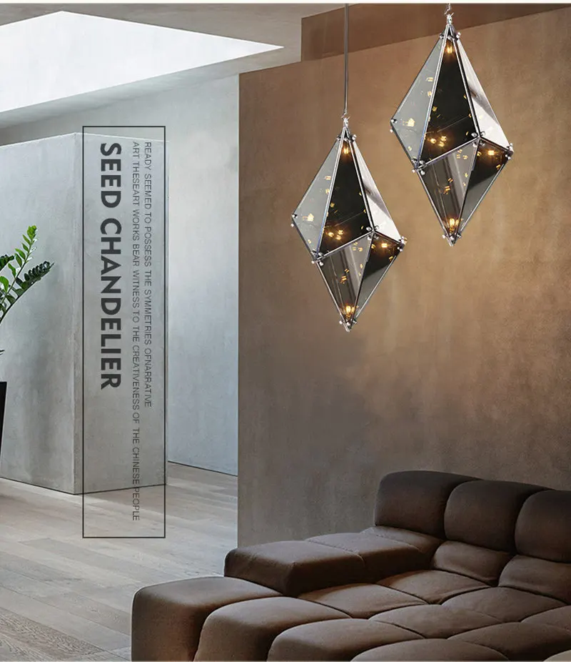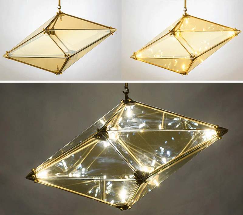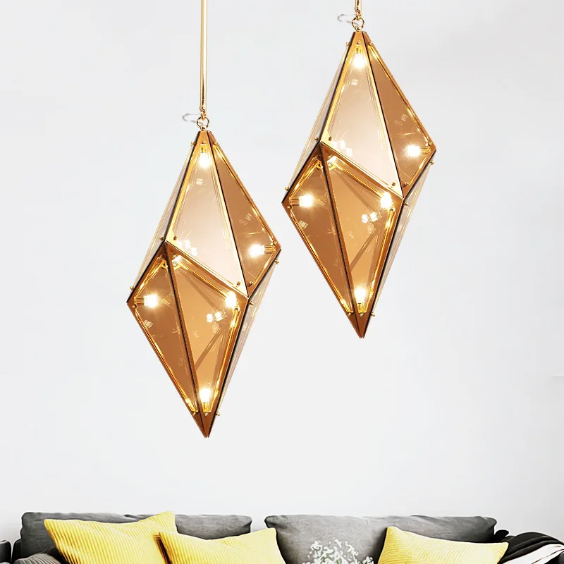 Современный Гостиная люстра, создающая атмосферу Роскошные туфли-лодочки на платформе, с подвесной светильник бар индивидуальных из ромбов, многогранник Стекло дизайнерские лампы