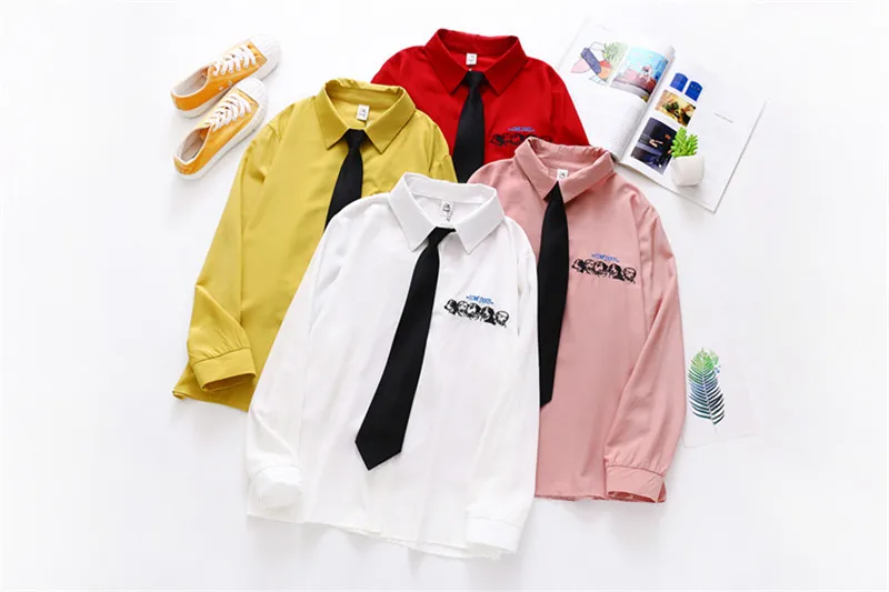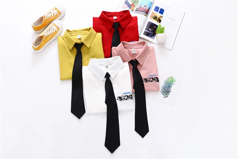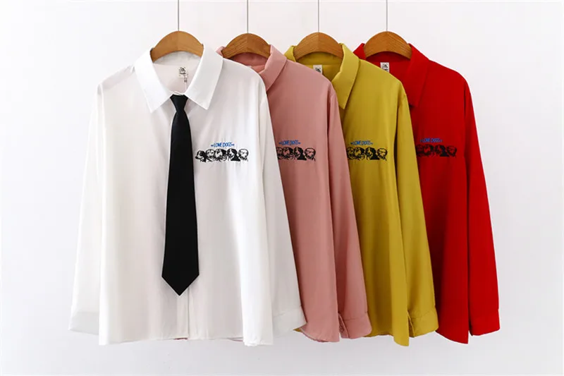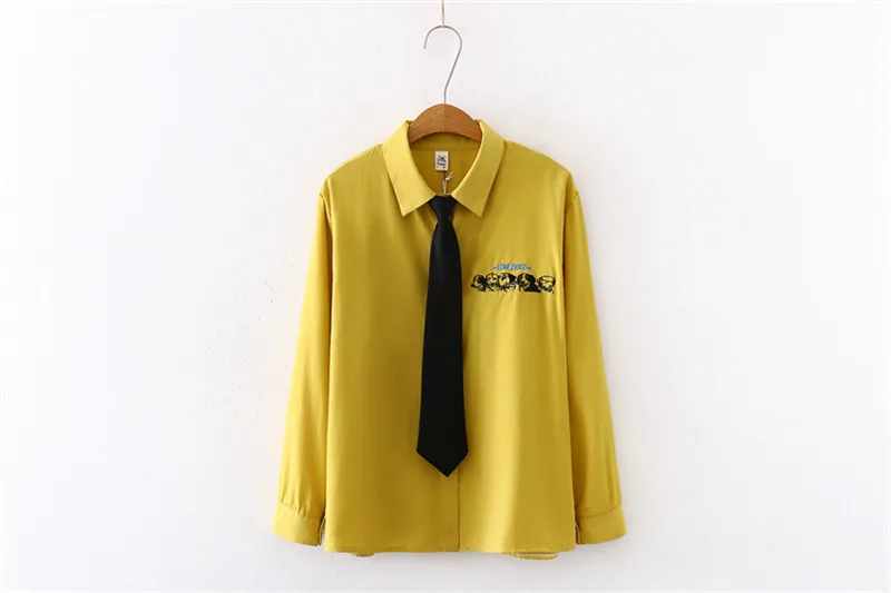 Лето 2020 новые женские желтые рубашки с принтом собаки и буквами с галстуком осенние рубашки с длинными рукавами свободные топы в стиле кэжуал блузки Feminina Blusa T02812F