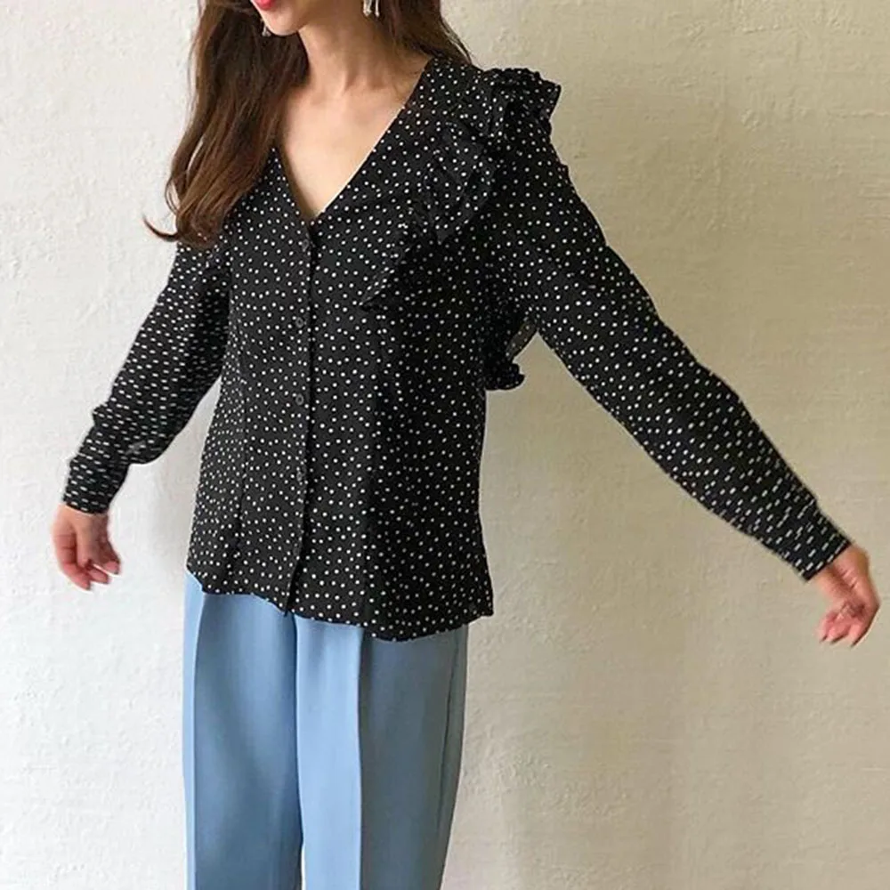 Свободная Женская шифоновая белая блузка в Корейском стиле модель 2020 года черная