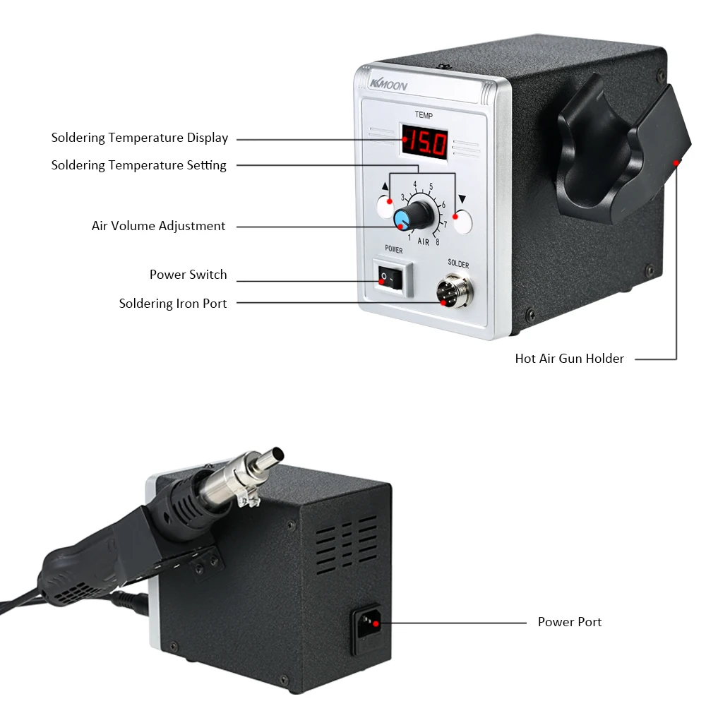 Эта высококачественная паяльная станция небольшого размера идеально подходит для пайки, демонтажа и обслуживания телефона. Это быстрый нагрев, и он может начать работать через минуту.
