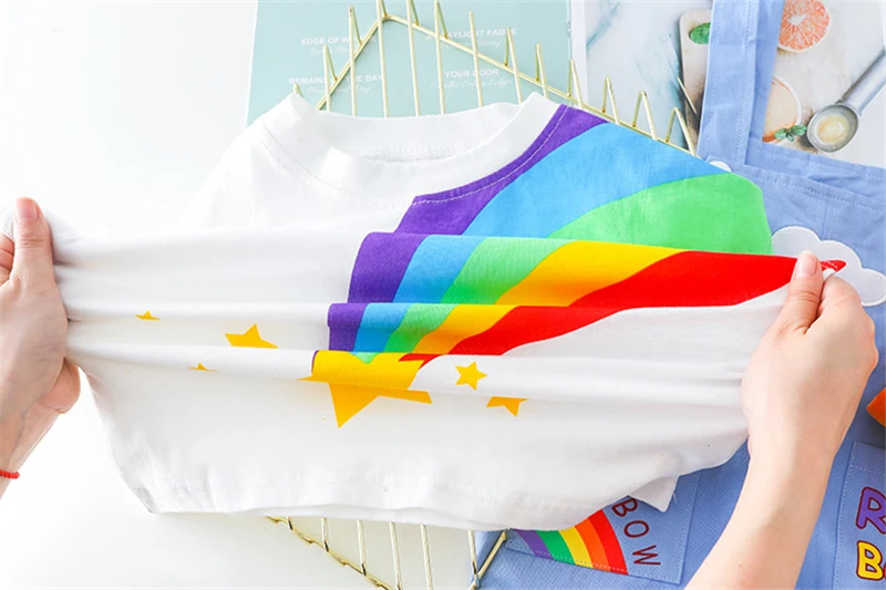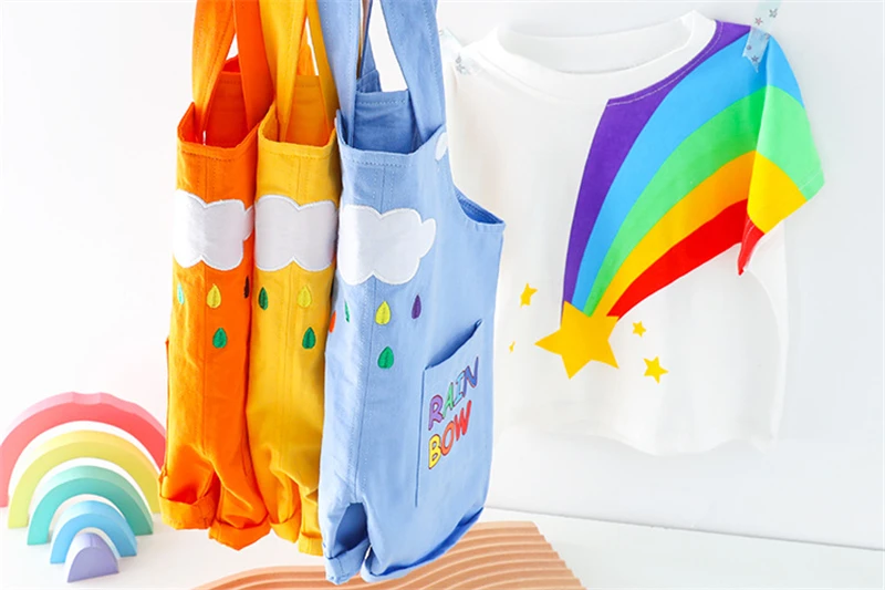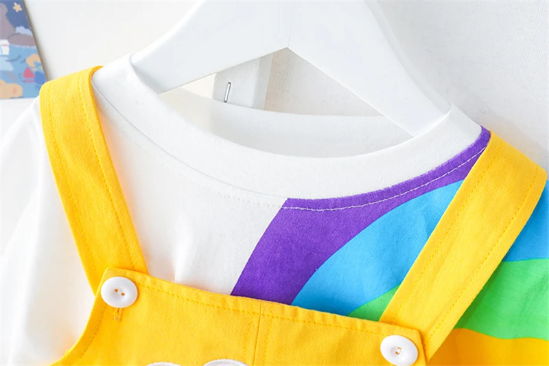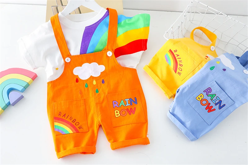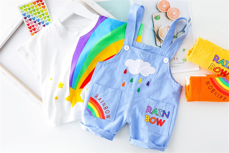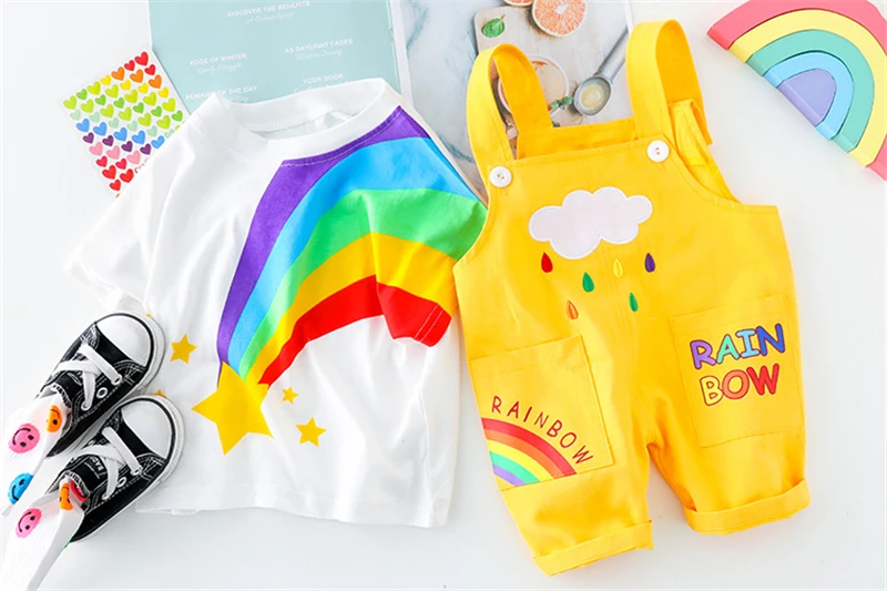Новая модная летняя одежда для маленьких девочек, детская хлопковая футболка, комбинезоны, 2 шт./компл., спортивный костюм для малышей, детские спортивные костюмы для От 0 до 5 лет