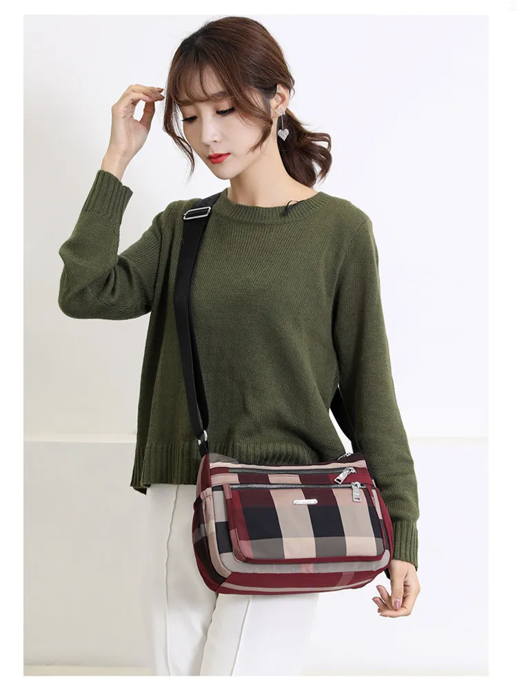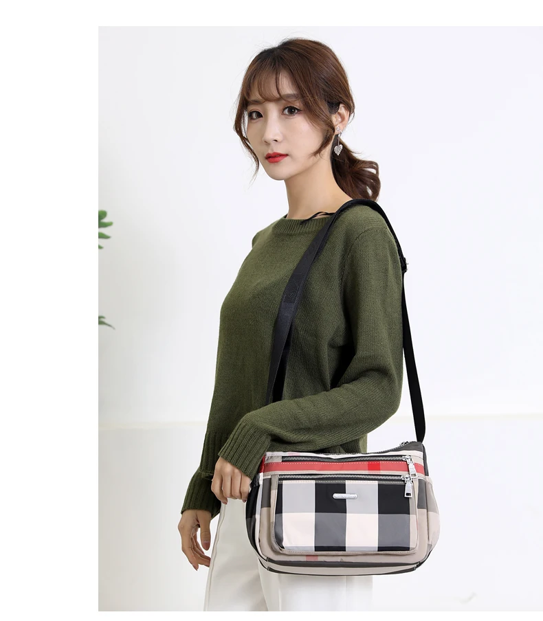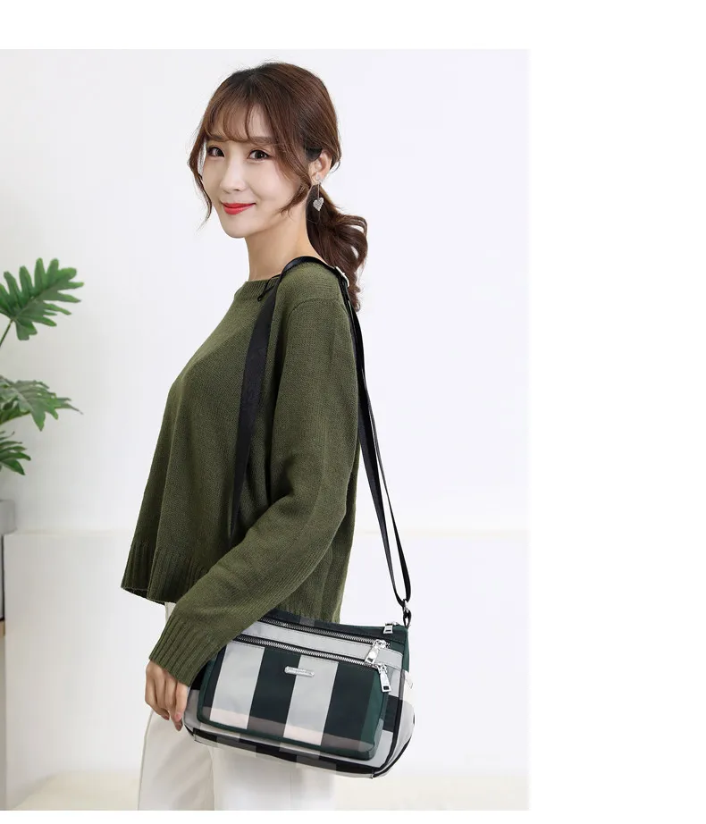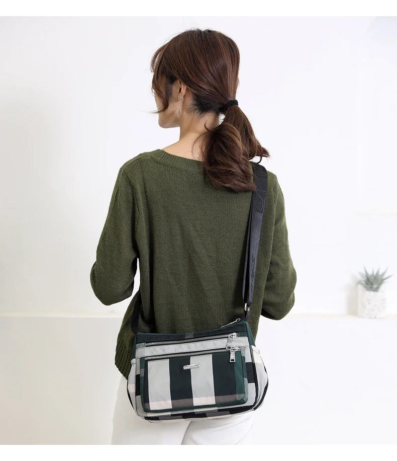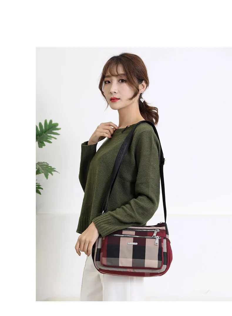2020 Повседневная женская сумка через плечо нейлоновая Водонепроницаемая клетчатая сумка через плечо мягкая на молнии мульти карман универсальные кошельки и сумки Sac
