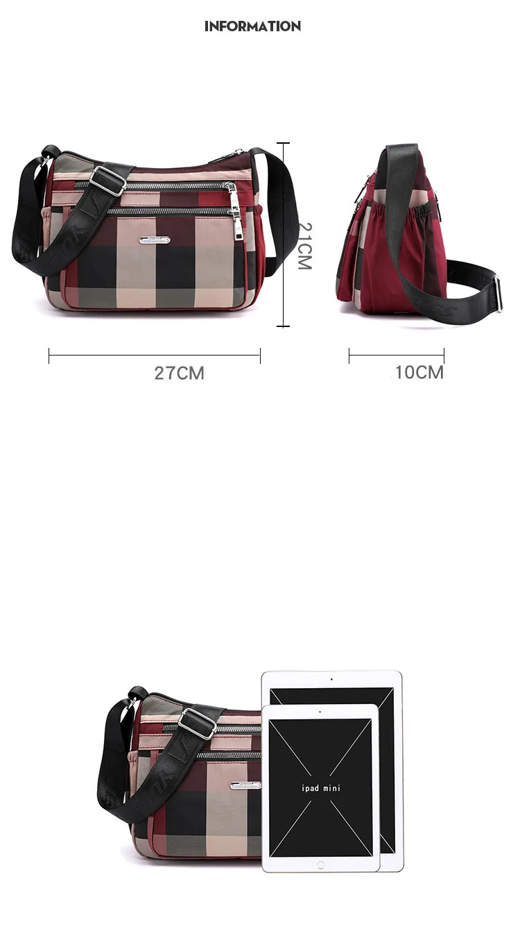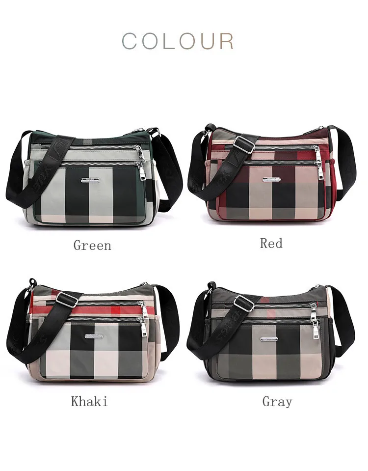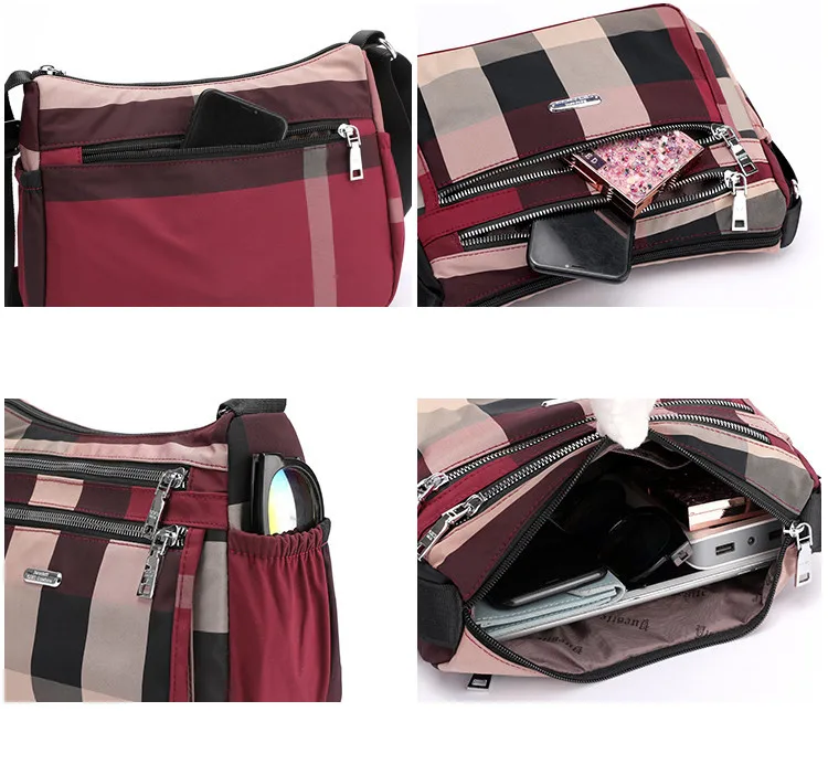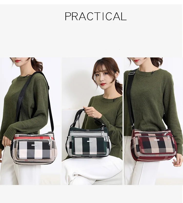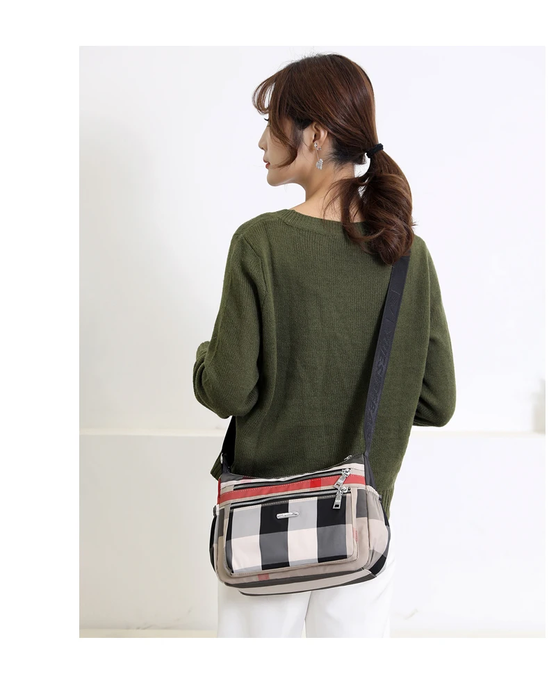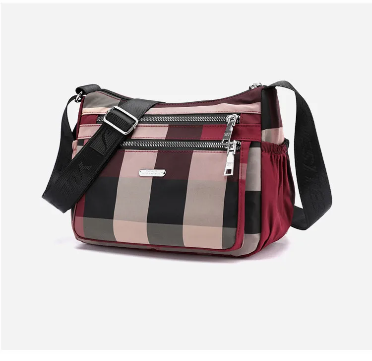 2020 Повседневная женская сумка через плечо нейлоновая Водонепроницаемая клетчатая сумка через плечо мягкая на молнии мульти карман универсальные кошельки и сумки Sac