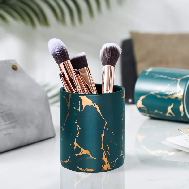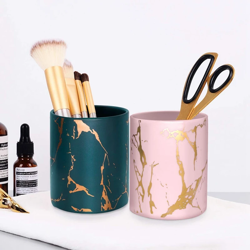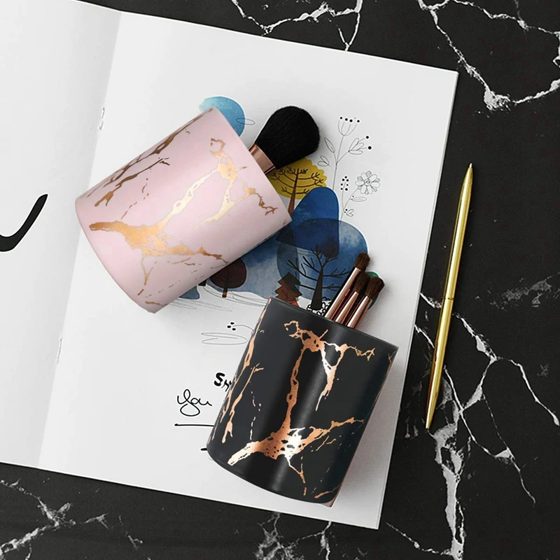 Держатель для ручки, подставка для стола с мраморным узором, чашка для карандаша для девочек, детский прочный керамический органайзер для стола, держатель для кистей для макияжа, идеальный G