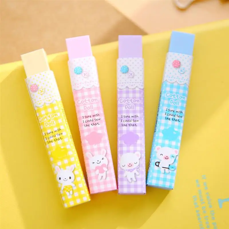 3 шт., Ластики для студентов, хлопковая кукла, милый цветной ластик в полоску для девочек