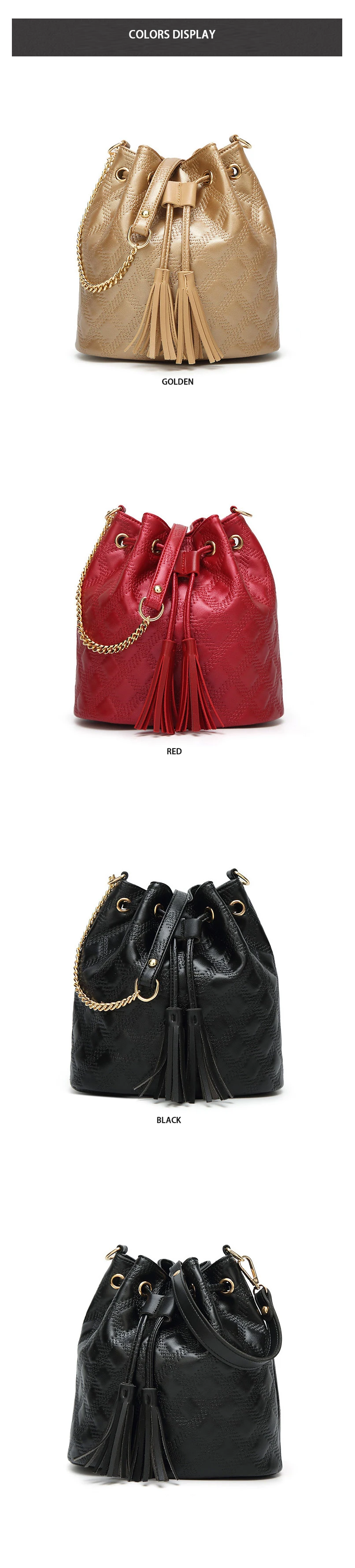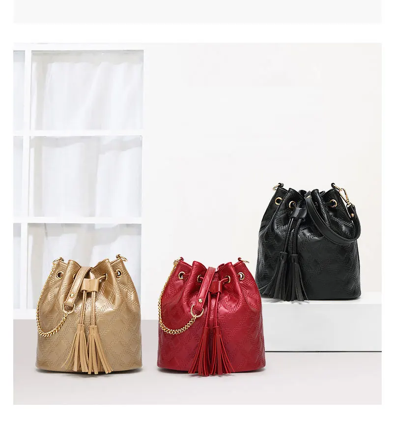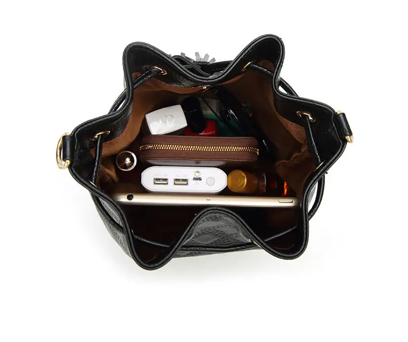 Fashion Genuine Leather Women Bucket Bag Vintage Tassel Messenger Bag High Quality Retro Shoulder Bag Simple Crossbody Bag Tote