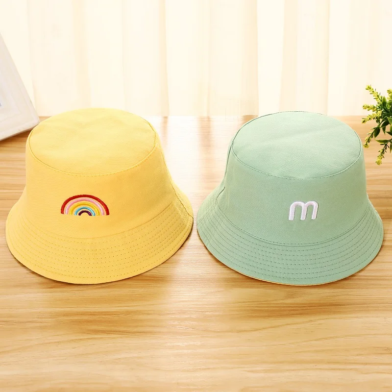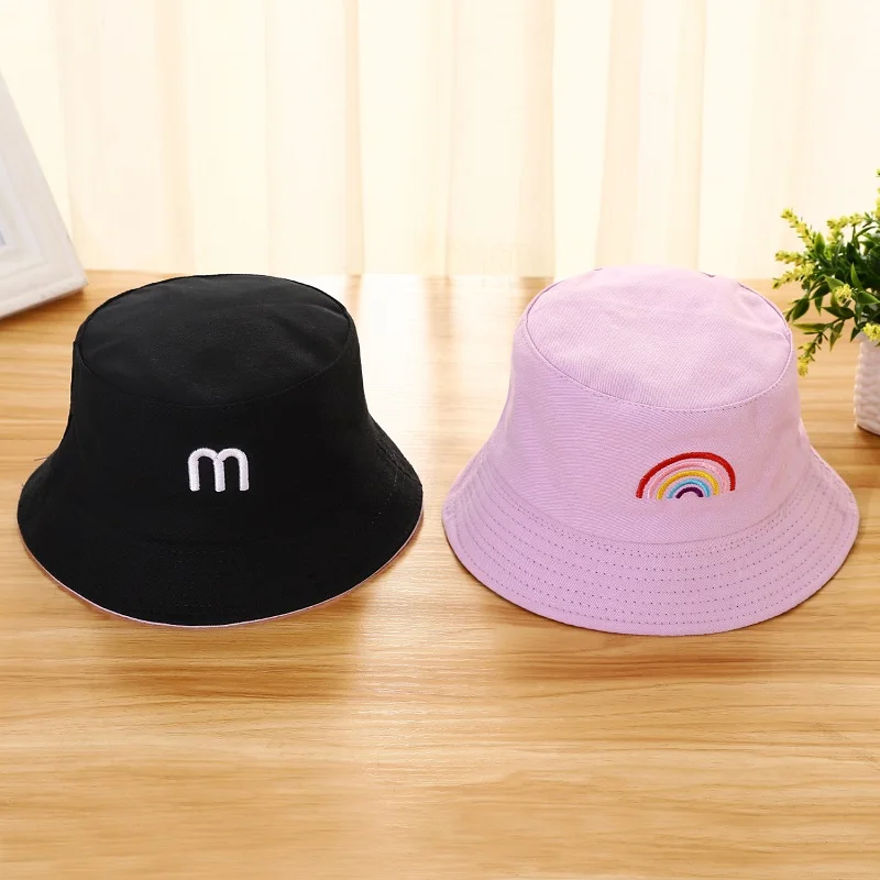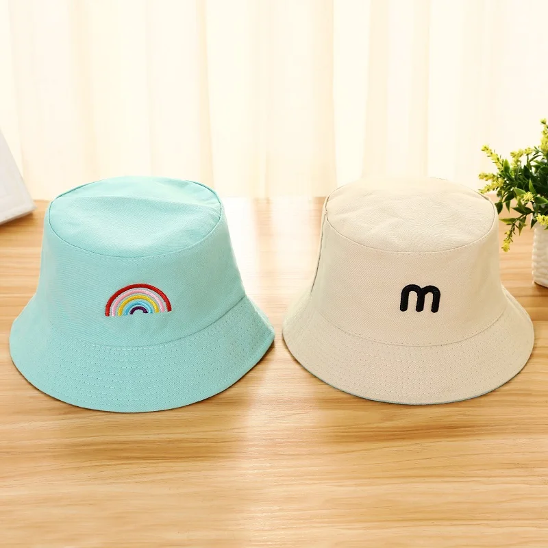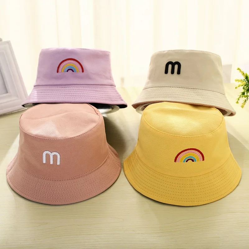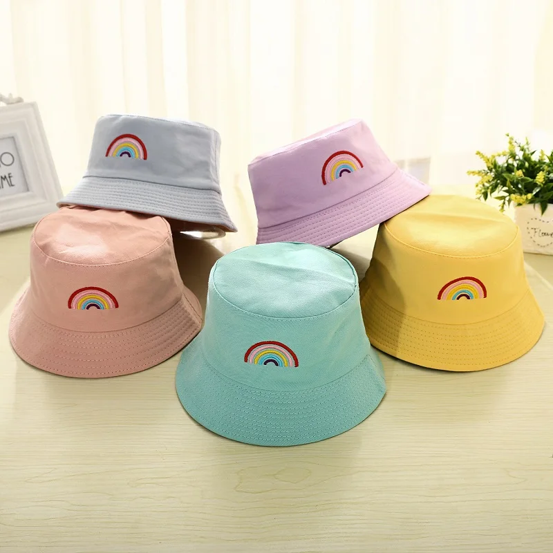 Летняя детская шапка, двусторонняя Панама с радужной вышивкой для маленьких девочек и мальчиков, Детские Панамы от солнца