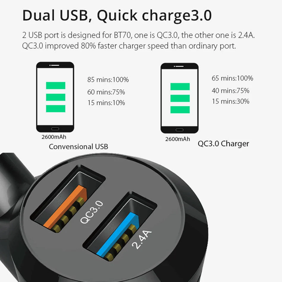 BT70 Автомобильный MP3 Bluetooth плеер Смарт Siri голос 1,7 дюймов Большой экран дисплей