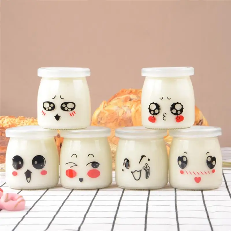 Вы можете использовать эти многоразовые маленькие стеклянные банки, чтобы создать уникальные вечерние сувениры или закуски, или использовать их для Хранения Домашней пищи или йогурта! Каждая баночка для йогурта поставляется с разным мультяшным рисунком лица, выглядит очаровательно и порадует ваших вечерние гостей.
