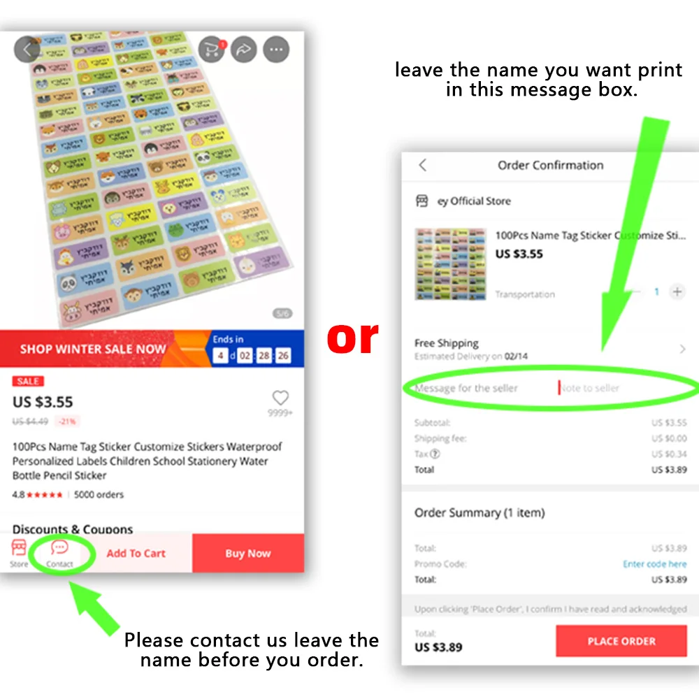 При заказе, пожалуйста, свяжитесь с нами, чтобы сообщить нам имя, которое вы хотите напечатать, и номер рисунка (без дополнительной платы), мы сделаем наклейку для вас.