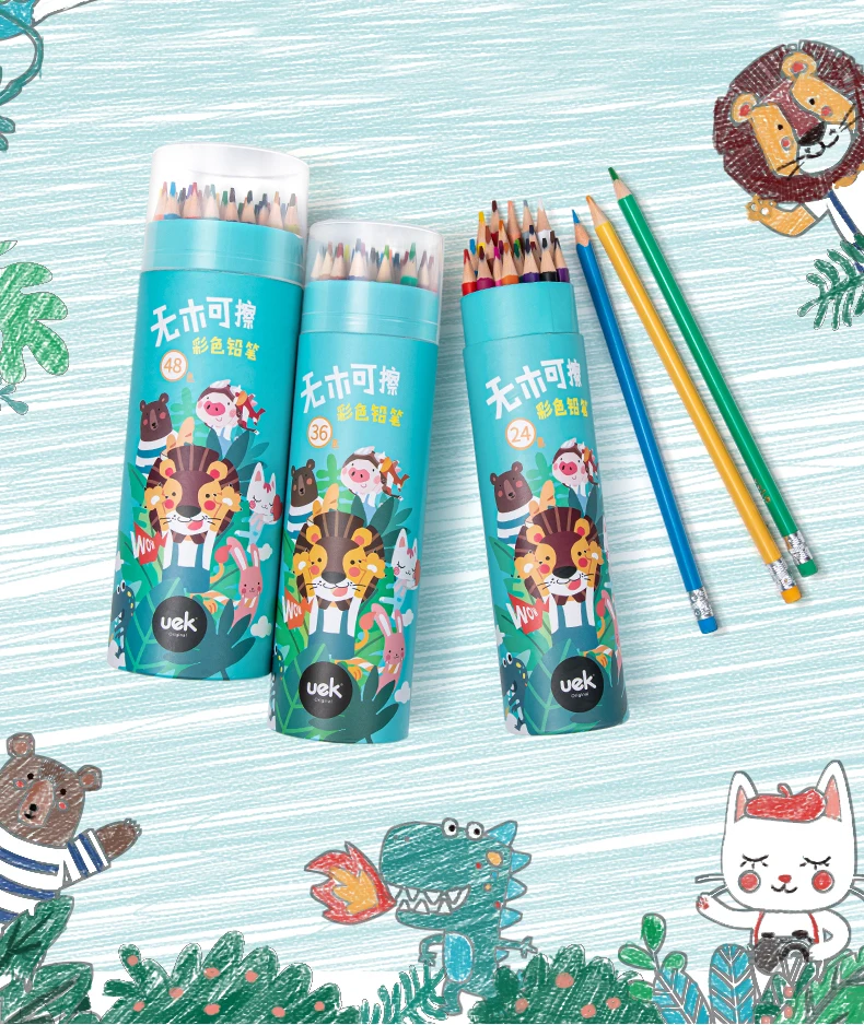UEK стираемые цветные карандаши набор растворимый в воде карандаш предварительно заточенный студенческий художественный инструмент для рисования для детей раскраски