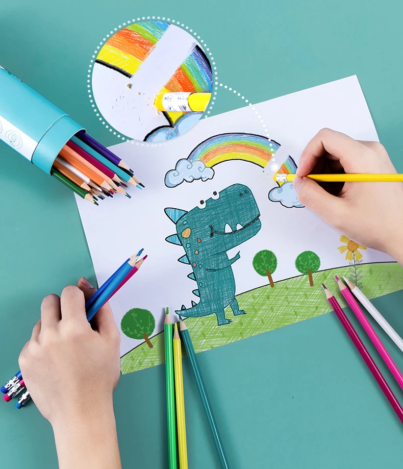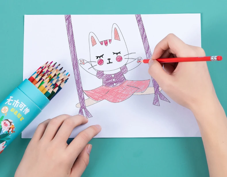 Цветные карандаши, которые можно стереть, с ПВХ-латексной резиной в конце, легко протирать, удобно и практично! Каждый из них оснащен резиной, различные цвета резины, вы также можете стереть другие цветные ручки