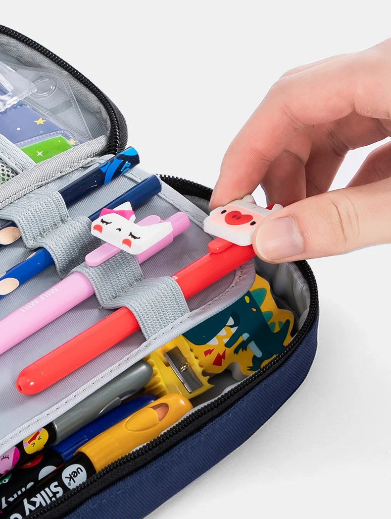 Чехол-карандаш имеет 3 слоя, что позволяет хранить несколько предметов и надежно держать ручки на месте.
