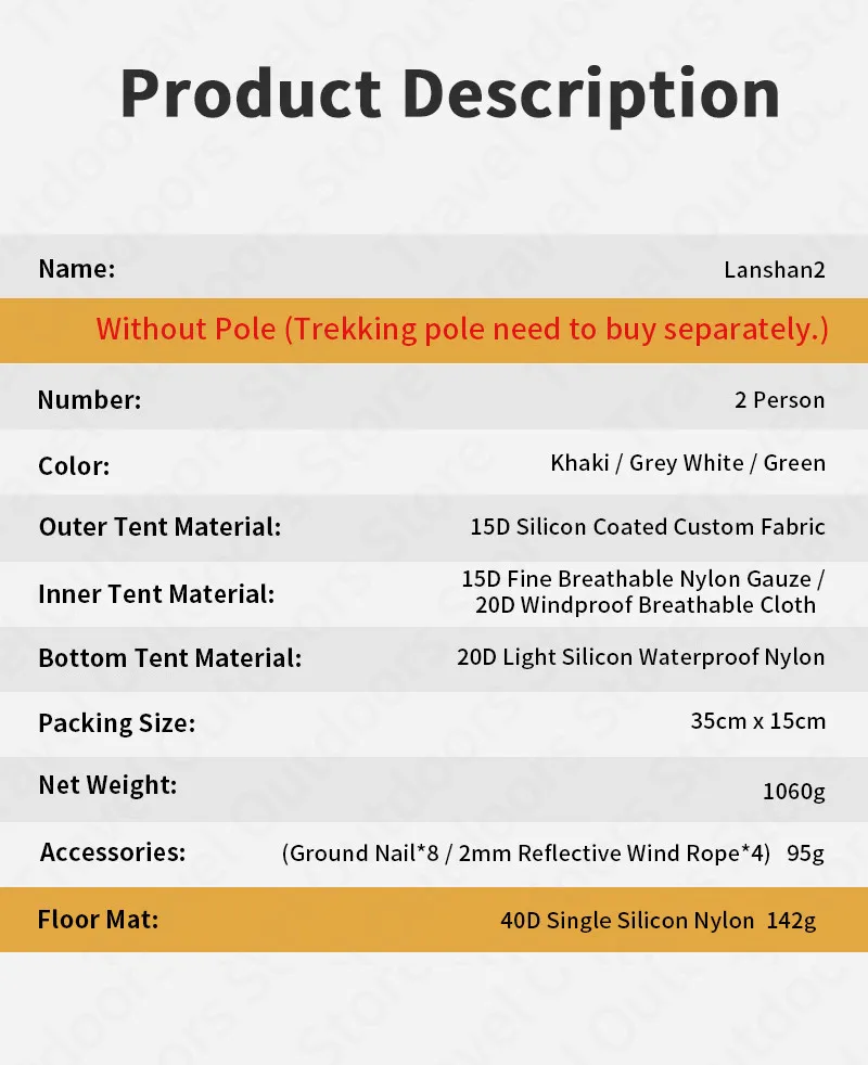 Название: LANSHAN 2 легкая палатка без полюса