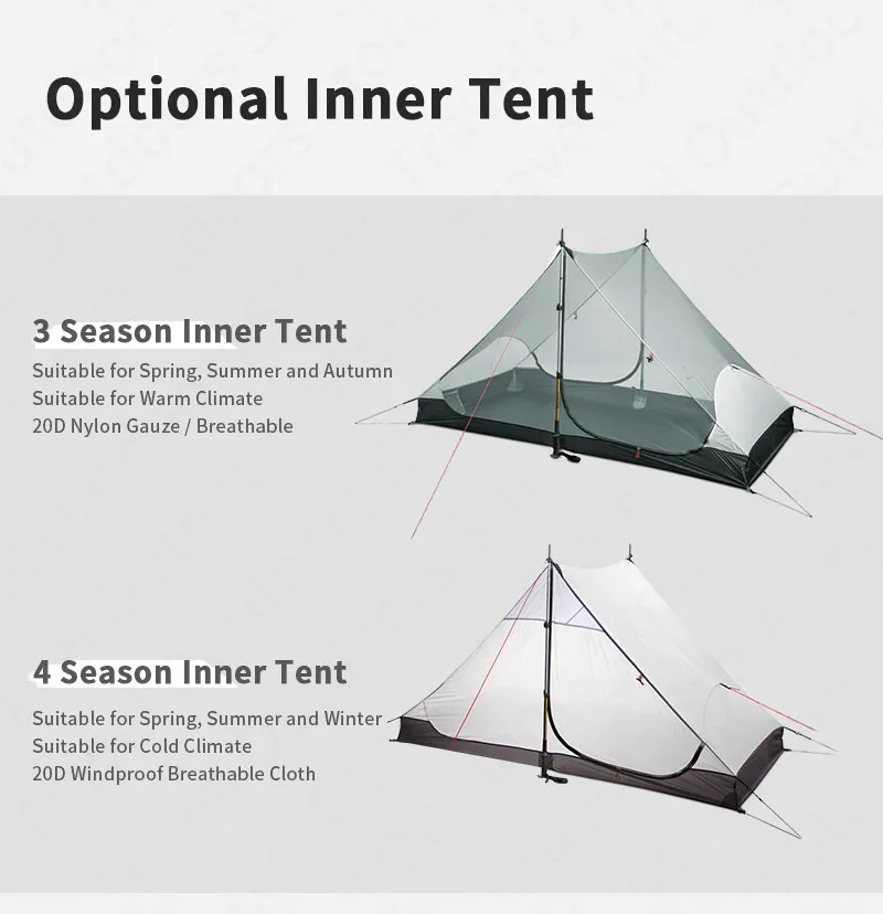 Внутренняя палатка: 15D тонкая дышащая нейлоновая Марля/20D ветрозащитная дышащая ткань