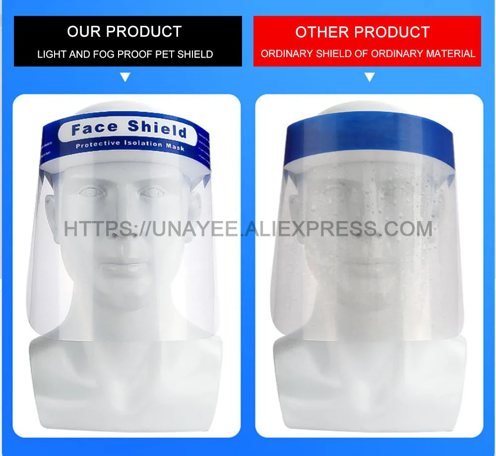 【Наименование name】protective защитная маска 【Product Component】PET Shield, Удобная губка с высокой эластичностью, эластичная резинка. 【Материал изделия 】 высококачественный противотуманный материал для домашних животных. [Размер] 32*22 см 【Application】для ежедневной защиты, анти-туман, анти-слюна, кухня маслостойкий, брызгозащищенный, изоляция. 【Face щит advantages】 1. Эффективно защищает ваше лицо, предотвращает попадание вируса в глаза через Летящую пыль и слюну; 2. По сравнению с защитными очками, защита лица более удобна в носке, не повреждает глаза и кожу, и цена дешевле; 3. Защитная маска изготовлена из не вредит экологии ПЭТ материала с высоким светильник с высоким коэффициентом пропускания, высокая четкость изображения и безвредные для здоровья человека. 【Преимущества ПЭТ материала 】 1. Обладает хорошими механическими свойствами, ударная прочность в 3-5 раз выше, чем у других пленок, хорошее сопротивление складыванию. 2. Устойчивы к воздействию масла, жира, олефиновой кислоты и разбавленной щелочи и устойчивы к большинству растворителей. 3. ПЭТ после армирования стекловолокном обладает хорошей термостойкостью к старению, температура охложения составляет-70 ℃, и он по-прежнему имеет определенную прочность при-30 ℃; 4. Низкая проницаемость газа и водяного пара, он имеет отличные газовые барьеры, воду, масло и запах. 5. Высокая прозрачность, может блокировать ультрафиолетовые лучи, хороший блеск. 6. Нетоксичный, без запаха, хорошая гигиена и безопасность.