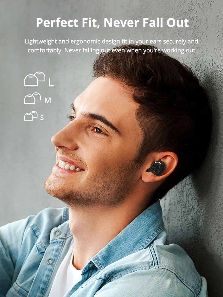 Легкий и эргономичный дизайн надежно и удобно помещается в уши. Никогда не выпадет, даже когда вы работаете.