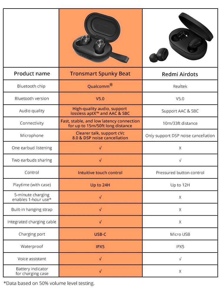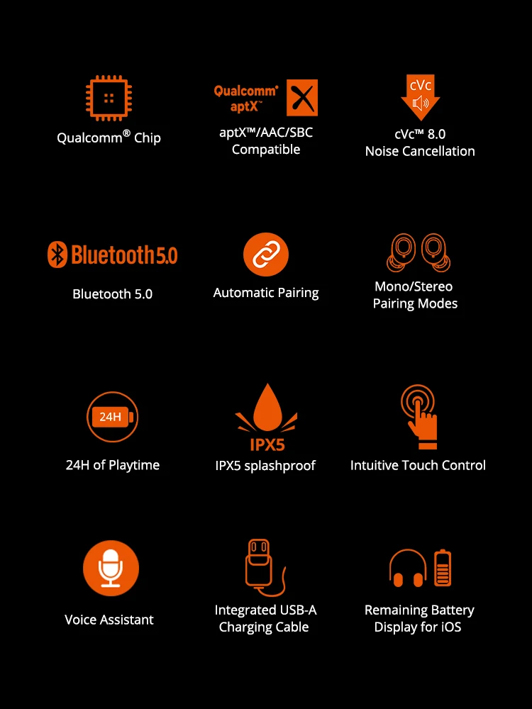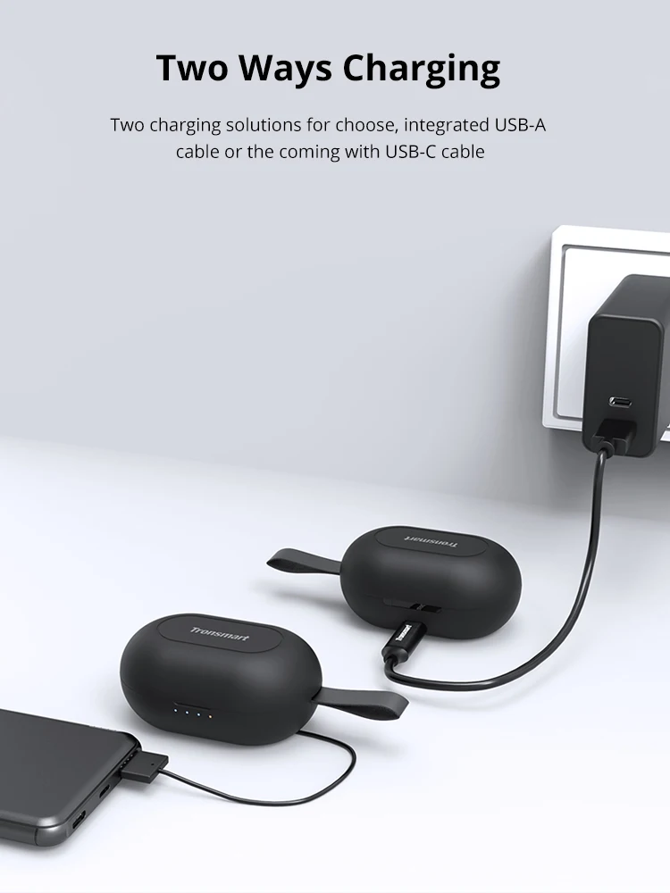 [Новая версия] поддерживает управление приложением 1. Оригинальные наушники Tronsmart Spunky Beat; 2. Поддерживает APTX с Qualcomm®Чип; 3. CVC™8,0 технологии для очистки шума; 4. До 24 часов воспроизведения. 5. Поддержка голосового ассистента и сенсорного управления.