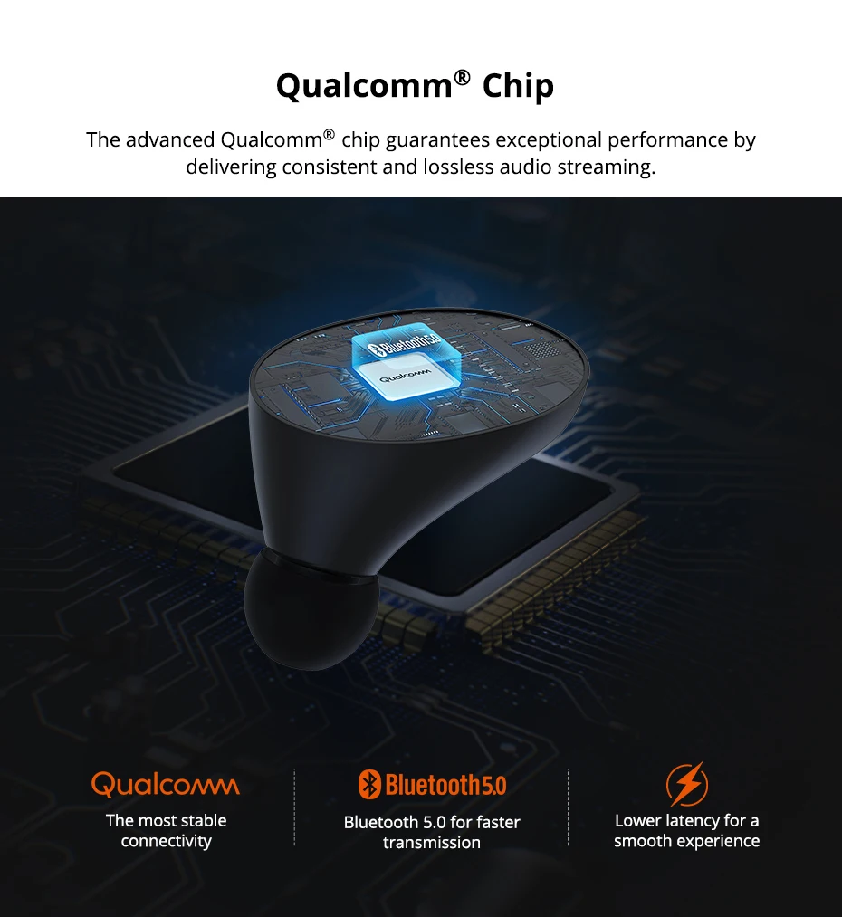 Улучшенный чип Qualcomm® гарантирует исключительную производительность, обеспечивая последовательную и без потерь Потоковую передачу звука.