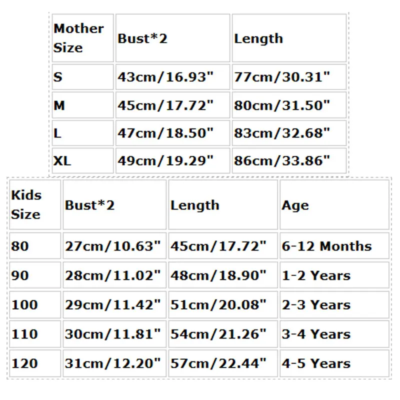 Hello! Welcome to our store! Quality is the first with best service. customers all are our friends. Fashion design,100% Brand New,high quality! Material:Cotton Blend Color:Show As Pictures Mother Size:S(UK 6-8)M(UK 10) L(UK 12) XL(UK 14) Kids Size:80,90,100,110,120