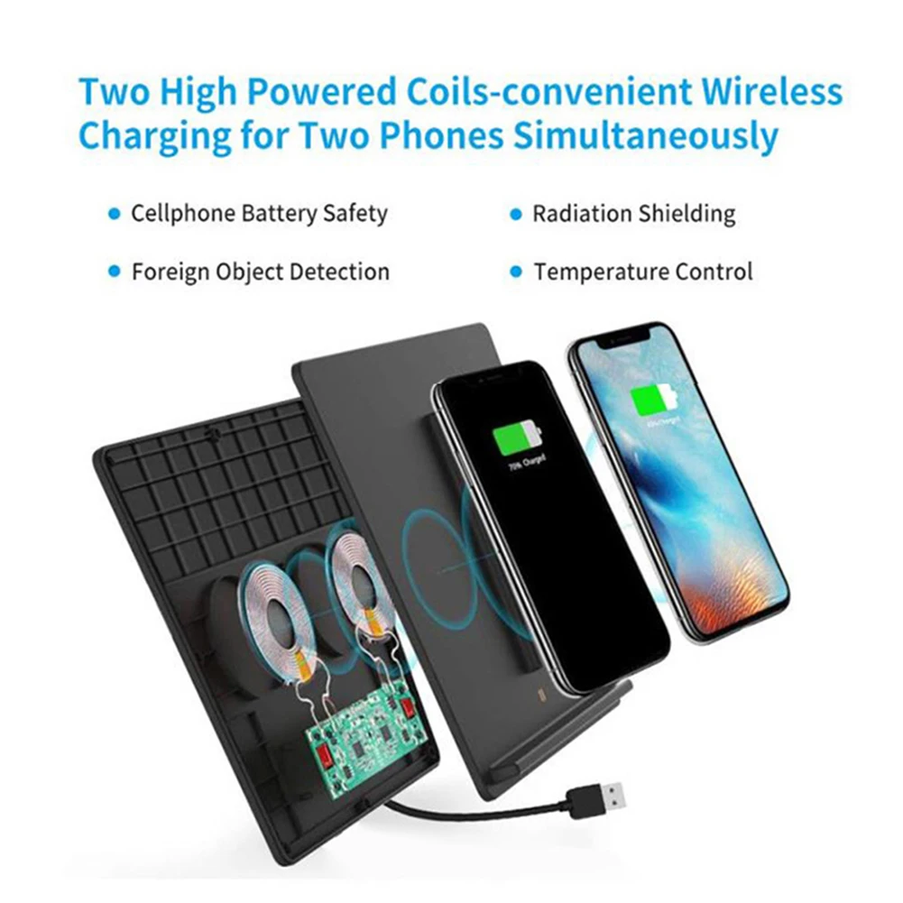 * Подходит для следующих типов аккумуляторов: два устройства одновременно, с мощностью до 10 ватт выходной мощности на каждой стороне обеспечивают работу, поддерживает 7,5 QI Беспроводная зарядка для iPhone. Поместите ваш телефон на нашу зарядную плату быстро, не беспокоясь о кабеле или порте, снова на ходу.