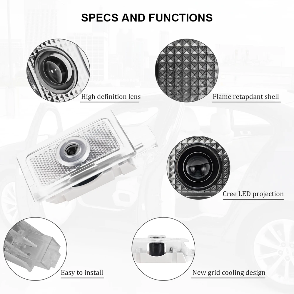 2. Классное Украшение: высокое разрешение и Яркий Светодиодный проекционный логотип на полу, когда вы открываете дверь вашего автомобиля.