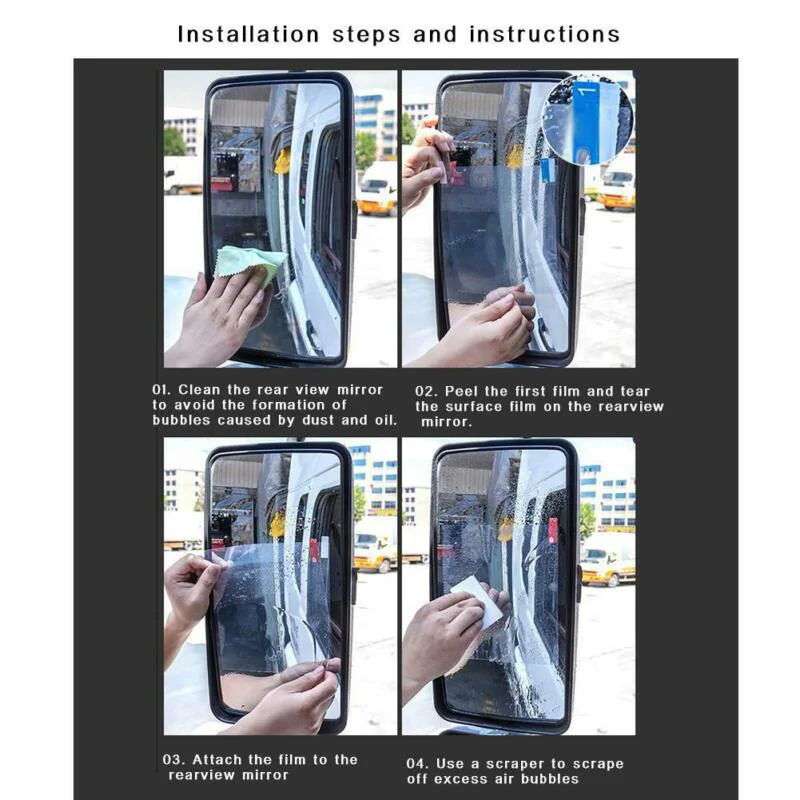 * Технология нано-покрытия высокой четкости: автомобильная пленка на зеркало заднего вида использует технологию нано-покрытия, чтобы эффективно уточнить Область обзора, чтобы избежать возможных опасностей.