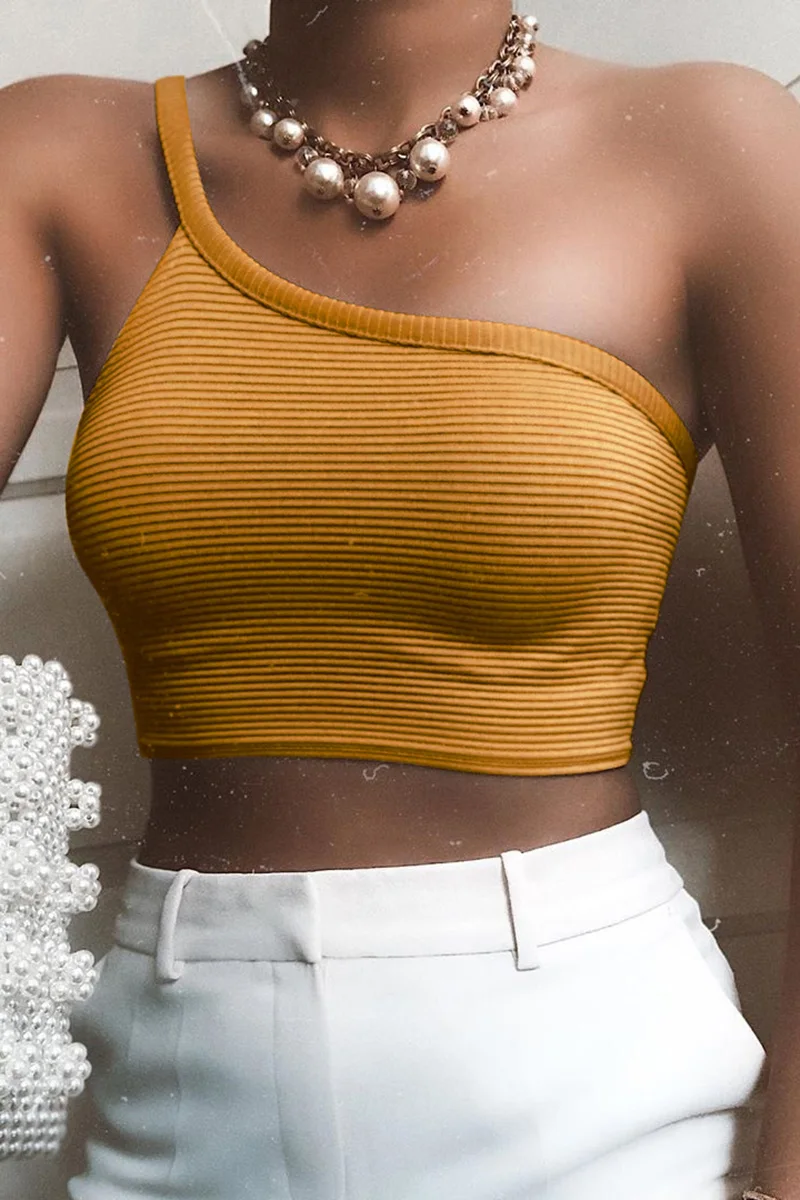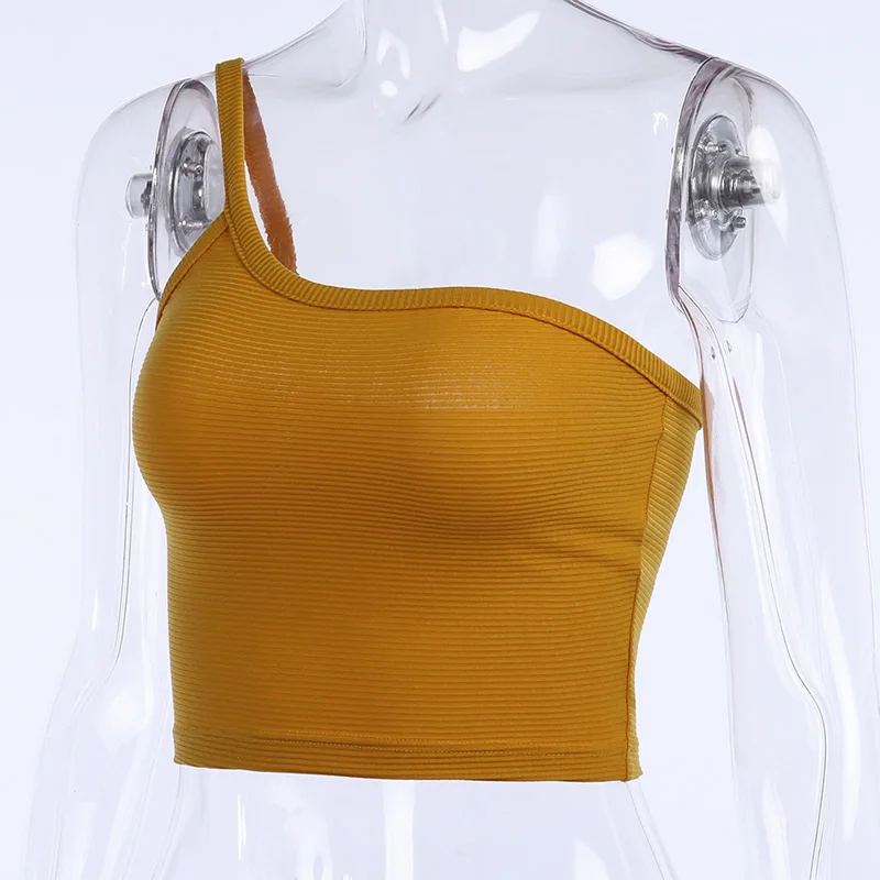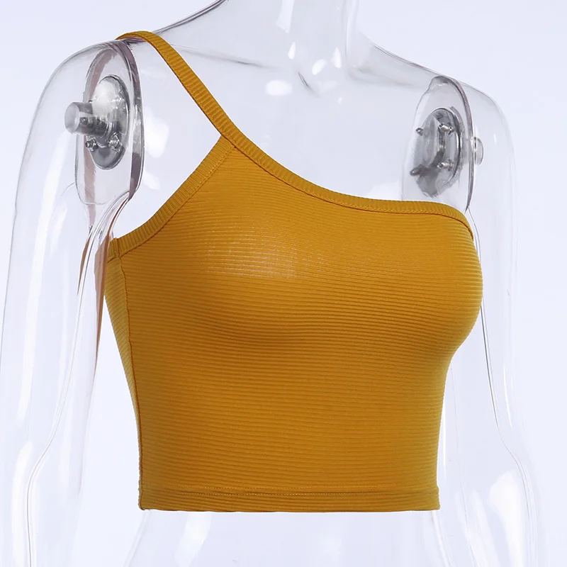 Модные женские сексуальные Camisoles новые тонкие повседневные топы на одно плечо женская одежда черный желтый жилет Летний без рукавов майки топы Femme!