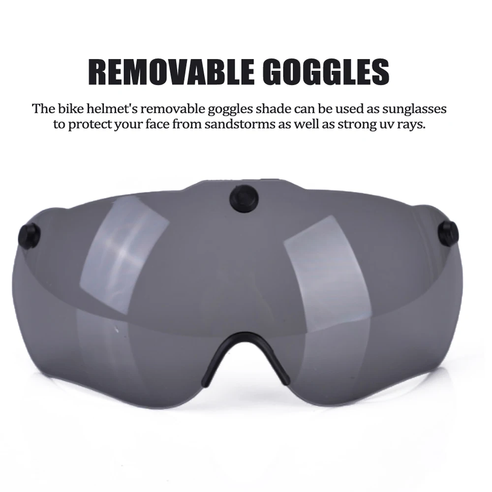 Съемные очки для велосипедного шлема могут использоваться в качестве солнцезащитных очков для защиты вашего лица от песчаных штормов, а также сильных ультрафиолетовых лучей.