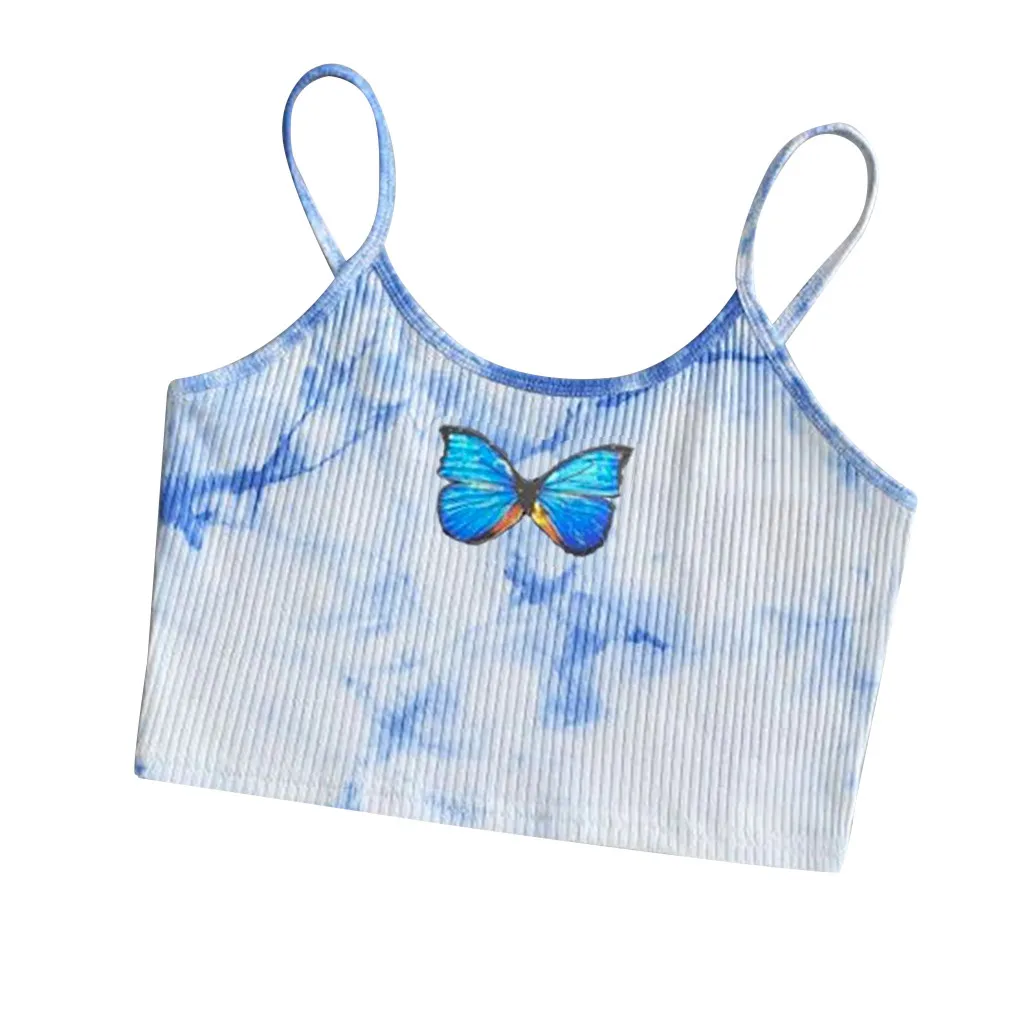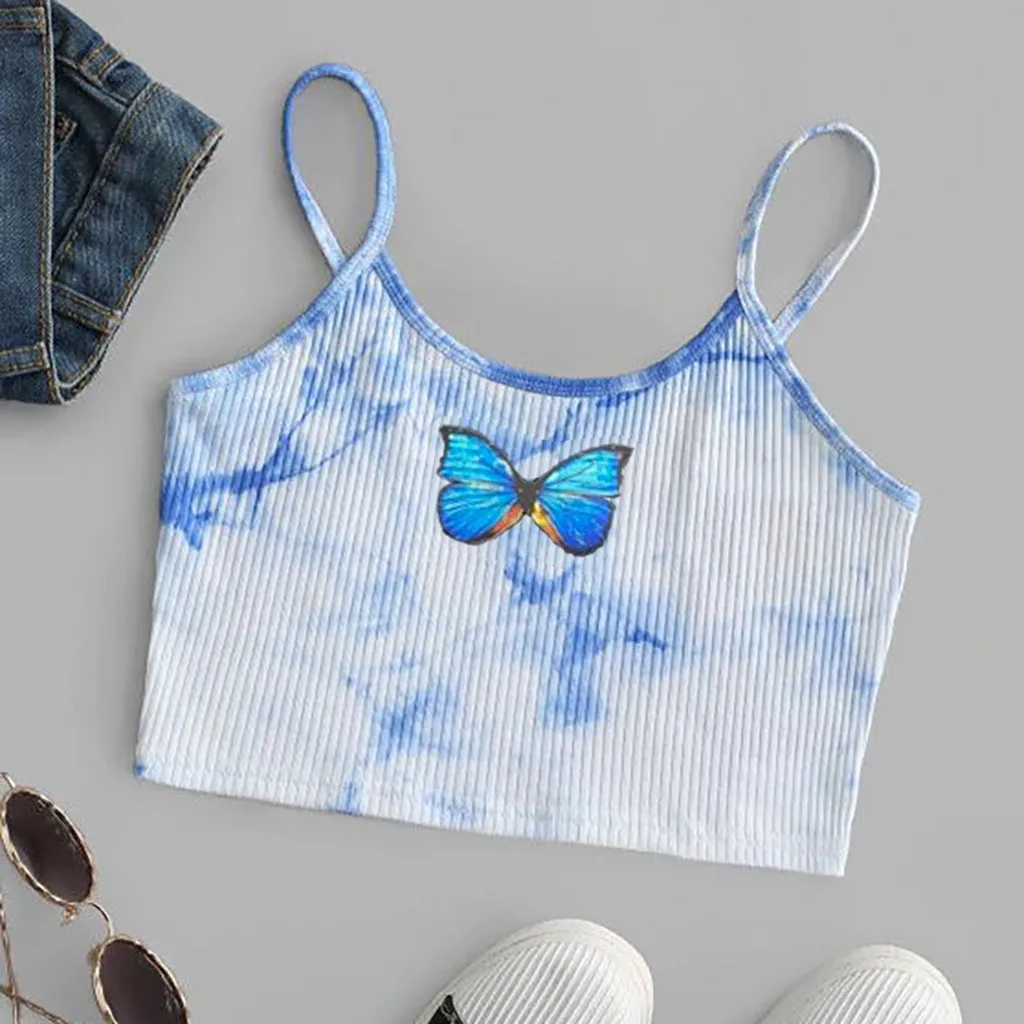 Женский укороченный топ с принтом бабочки Feitong, топы без рукавов, пуловер, майка, укороченные топы