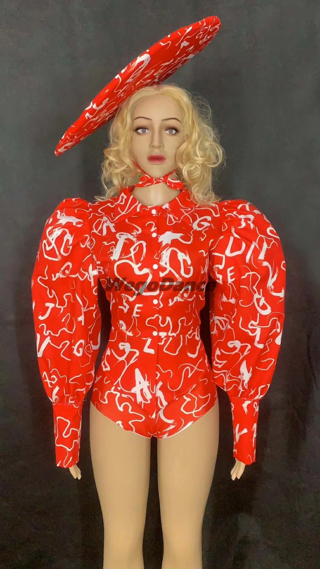 Рубашка с красным рисунком, короткая шапка, Женский костюм для танцев, комплект одежды для выпускного, певицы, танцев