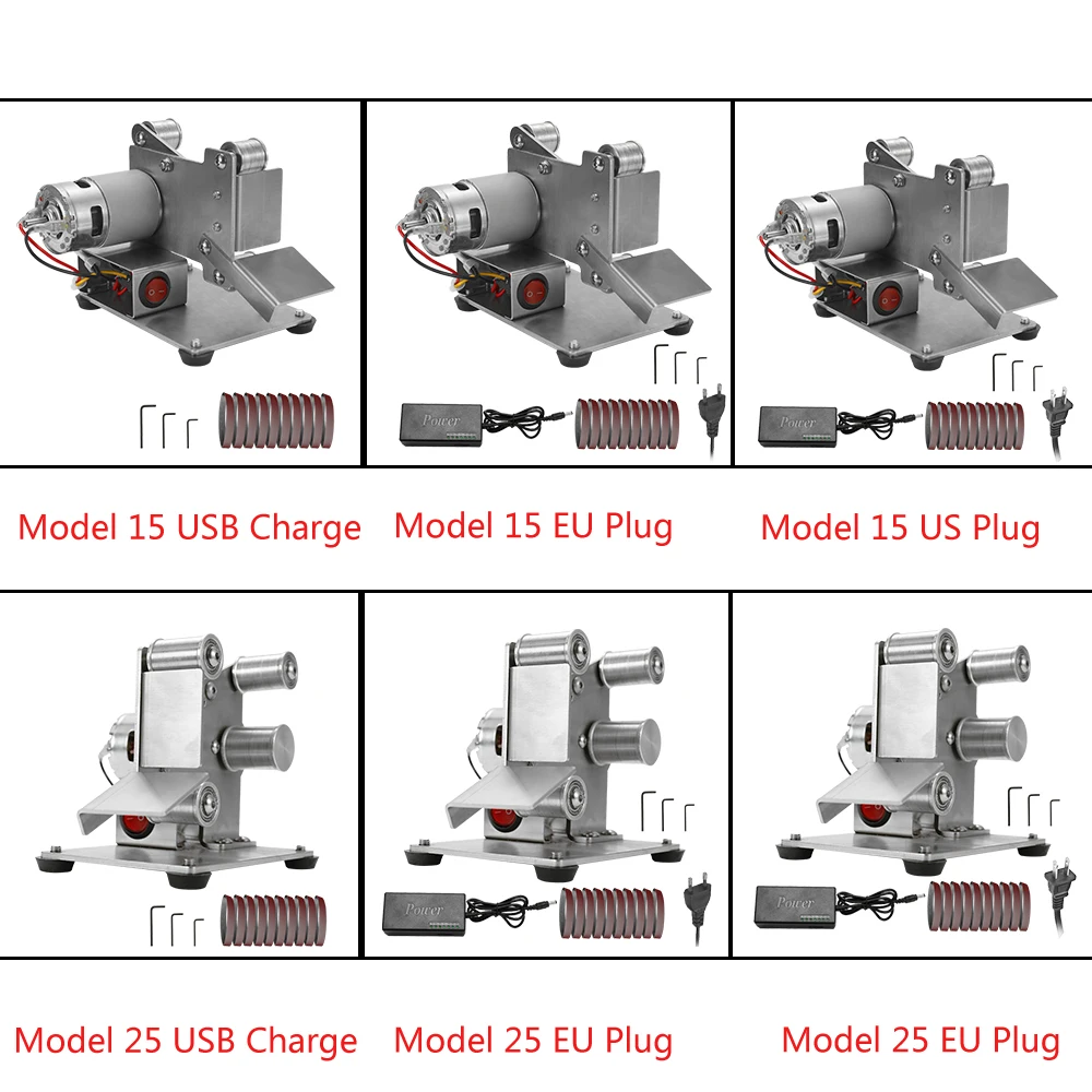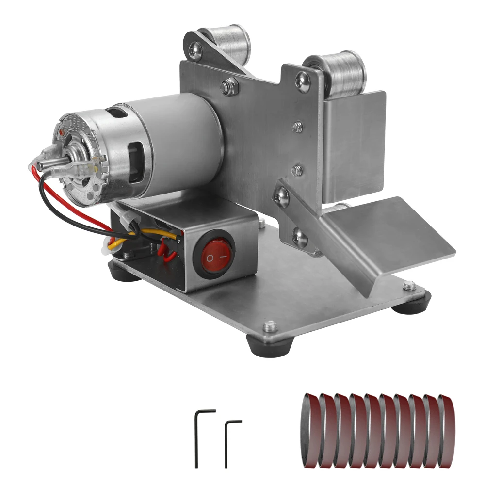 Это многофункциональный ленточный шлифовальный станок, мини портативный, низкий уровень шума, может использоваться для высокоскоростного стального сверла грубого шлифования, кромки лезвия, тонкого шлифования вольфрамовой стали токарного инструмента, полировки корень дерева Бодхи и т. Д., простой в установке и эксплуатации, это домашний инструмент DIY.