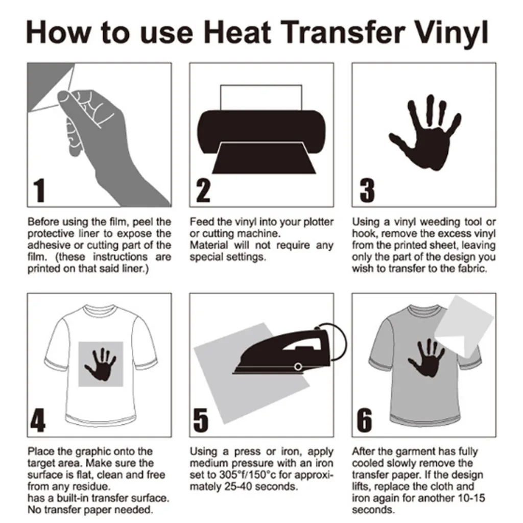 Ждать 24 часа до первой стирки. Винил с теплопередачей очень гибкий Эластичная прочная. Ваш дизайн сохранит тот же цвет даже после 50 стирки Циклы, отсутствие выцветания, отсутствие кожуры и трещин.