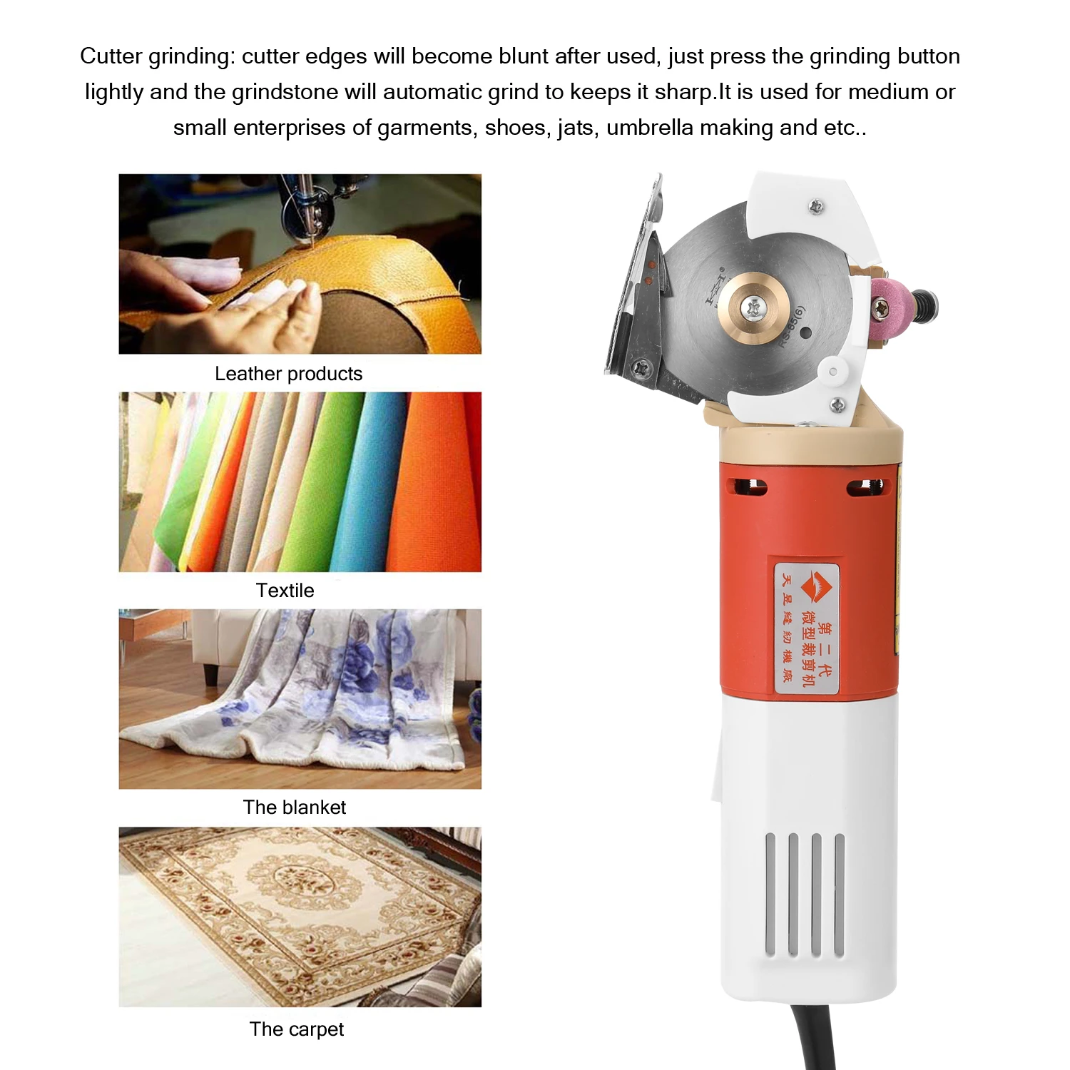 Этот электрический резак с 65 мм вращающимся лезвием имеет быструю скорость резки, высокую эффективность резки и отсутствие остаточных краев. Оснащен несколькими вентиляционными отверстиями для рассеивания тепла, может обеспечить более длительный срок службы. Он используется для средних или малых предприятий одежды, обуви, jats, изготовления зонтов и т. д. Подходит для резки различных типов ткани, таких как хлопок, кожа, полотенце, кружево и т. д. Вы можете попробовать.