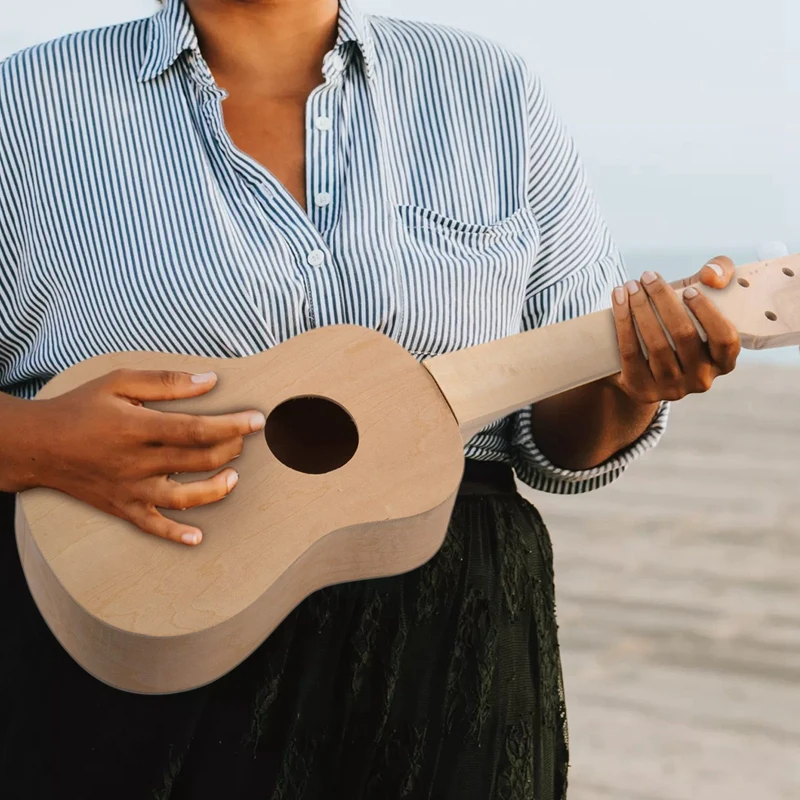 Сделай Сам укулеле, белый деревянный корпус, вы можете окрашивать или окрашивать то, что хотите.