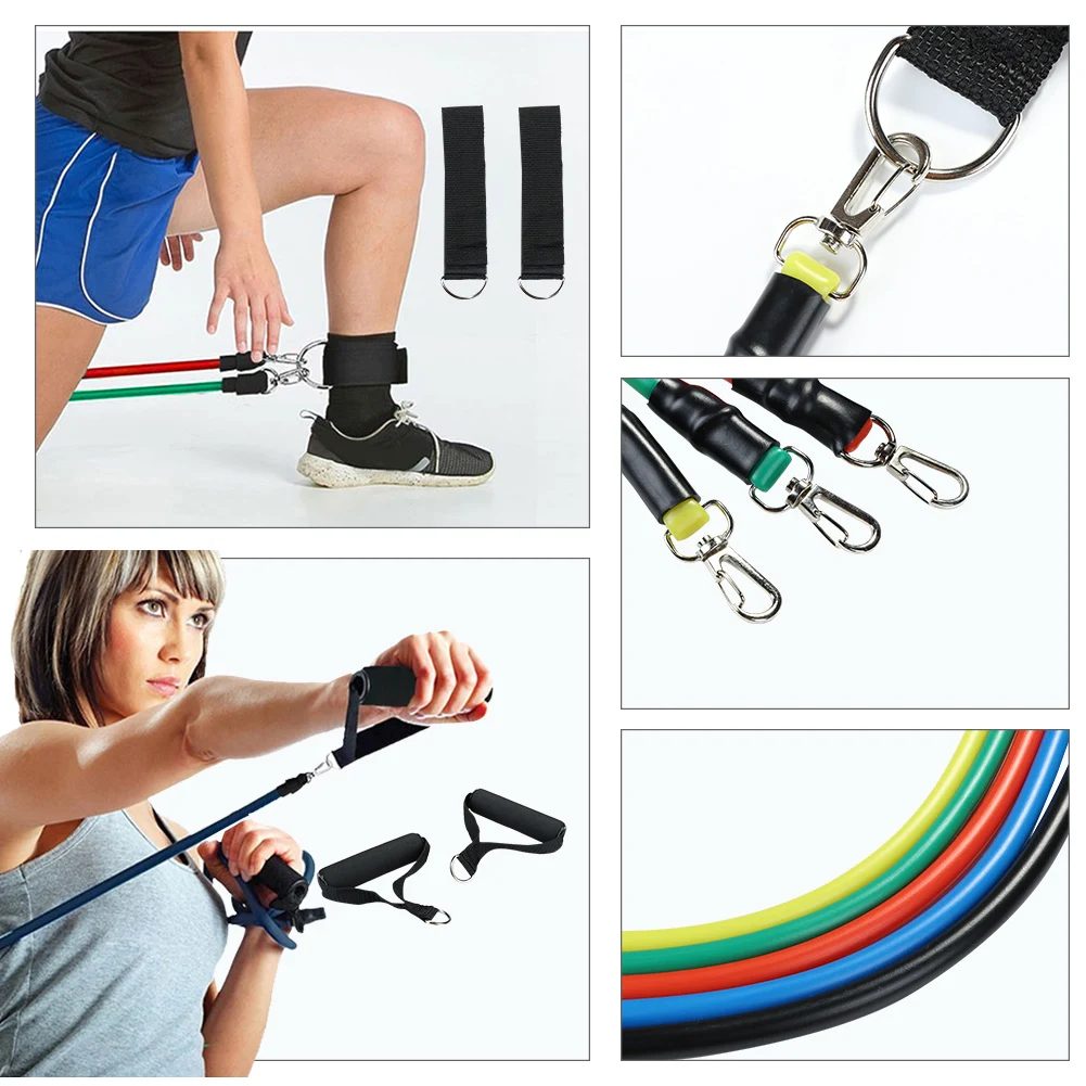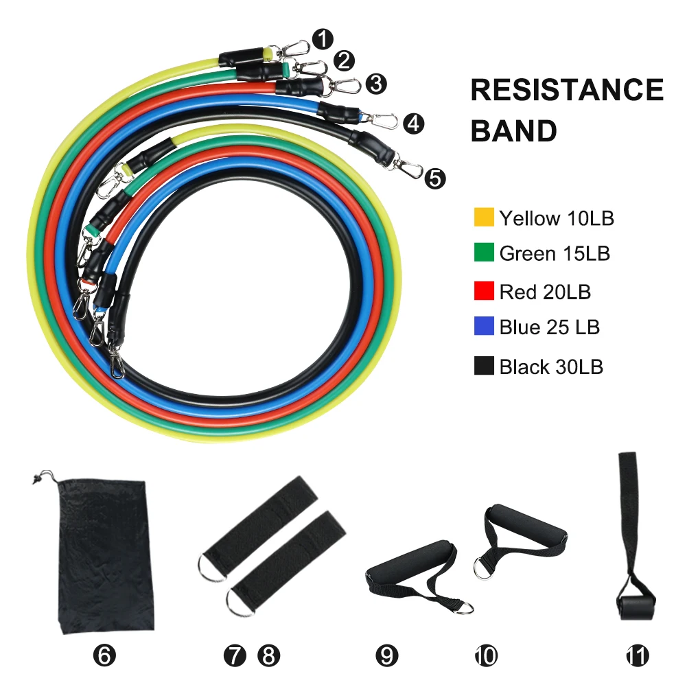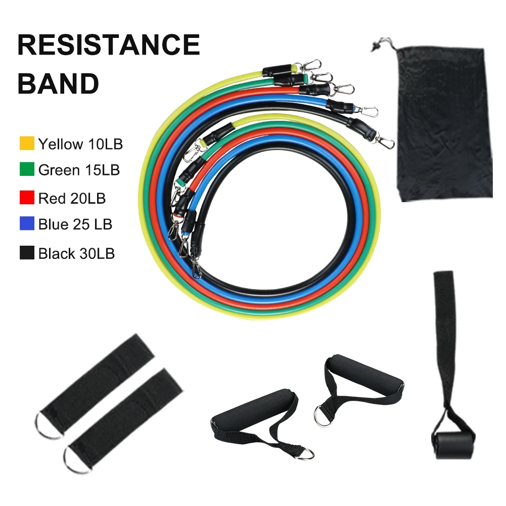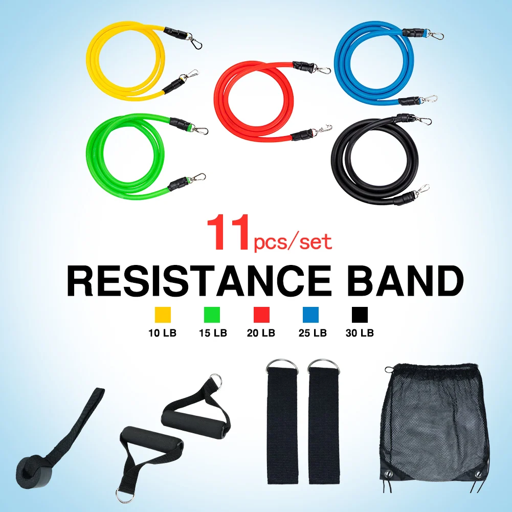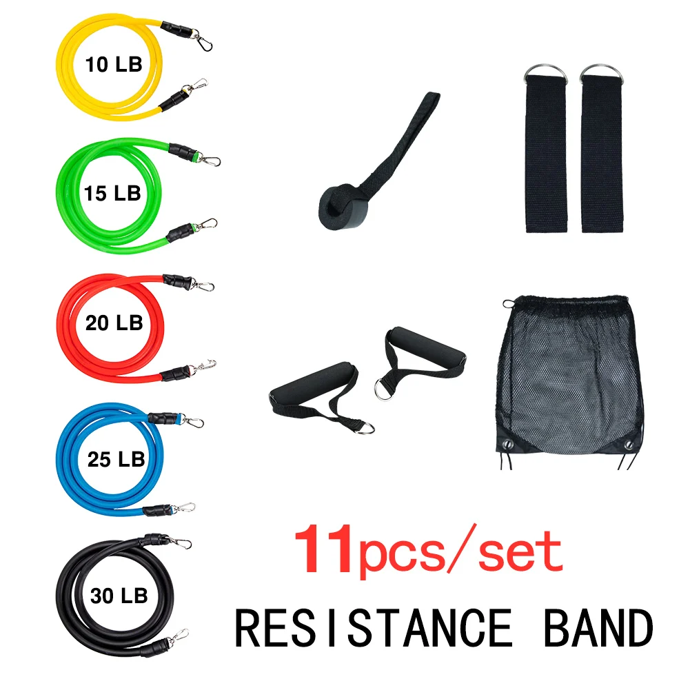 11 шт./компл. латексные резисторы для спортзала двери якорь лодыжки ремни с сумкой Набор для йоги упражнения фитнес-браслет резиновая петля трубки ленты