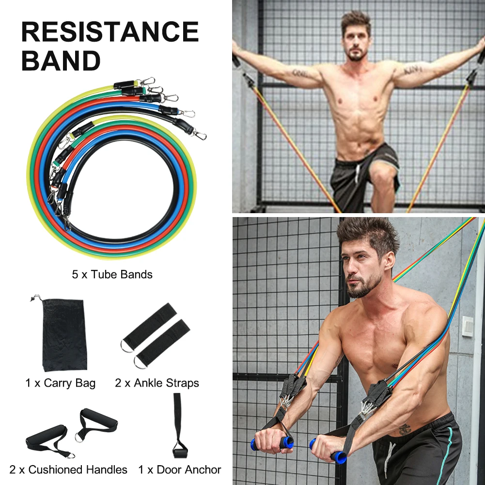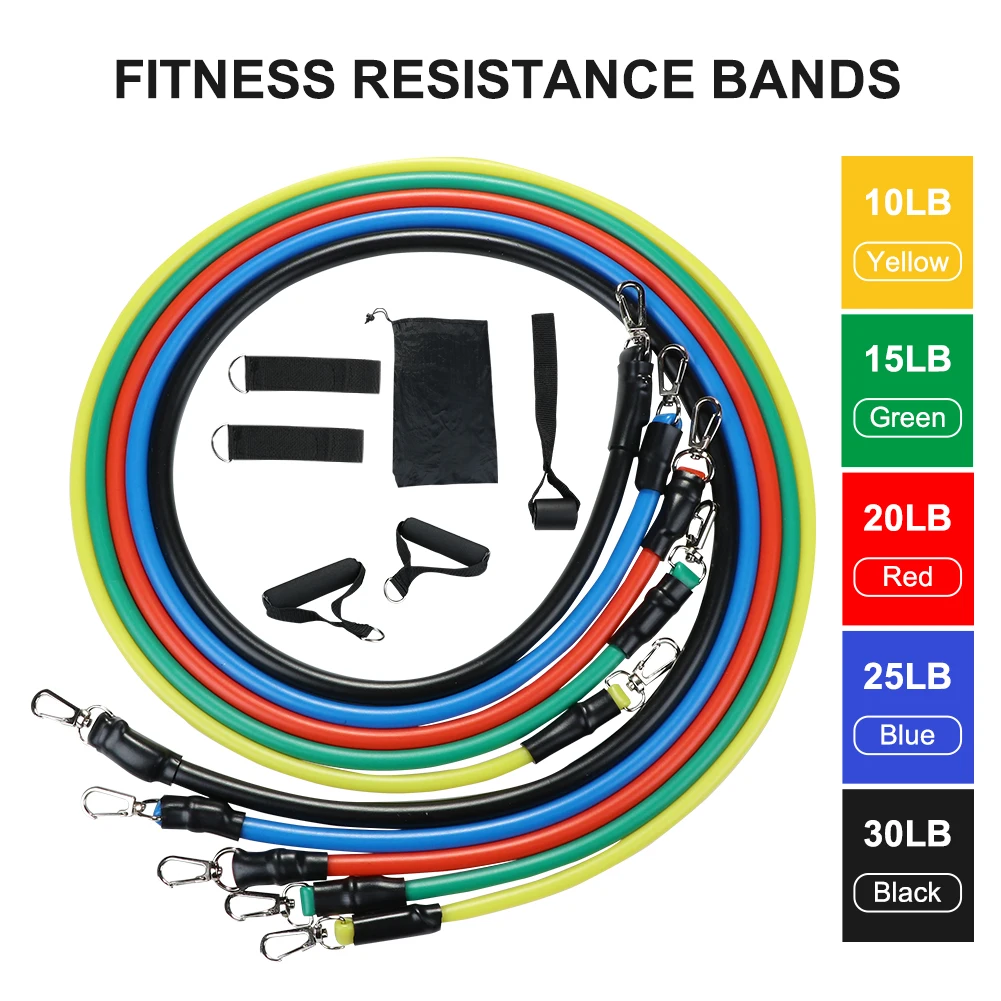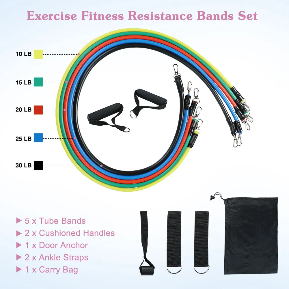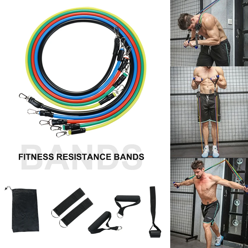 11 шт./компл. латексные резисторы для спортзала двери якорь лодыжки ремни с сумкой Набор для йоги упражнения фитнес-браслет резиновая петля трубки ленты