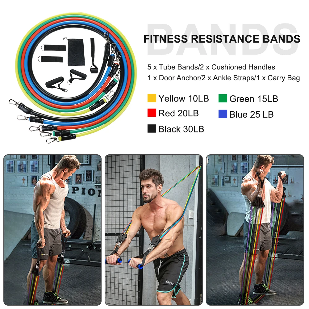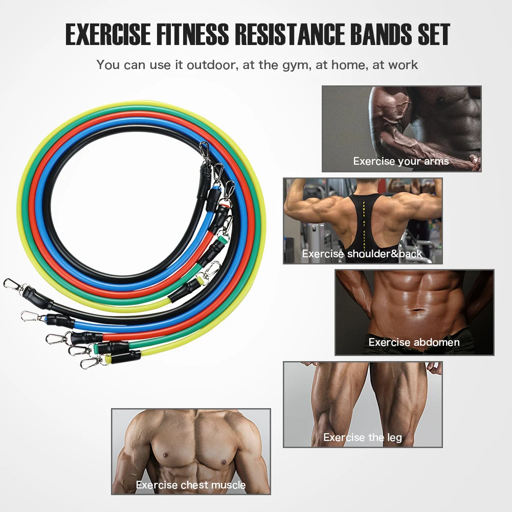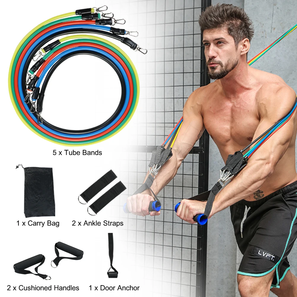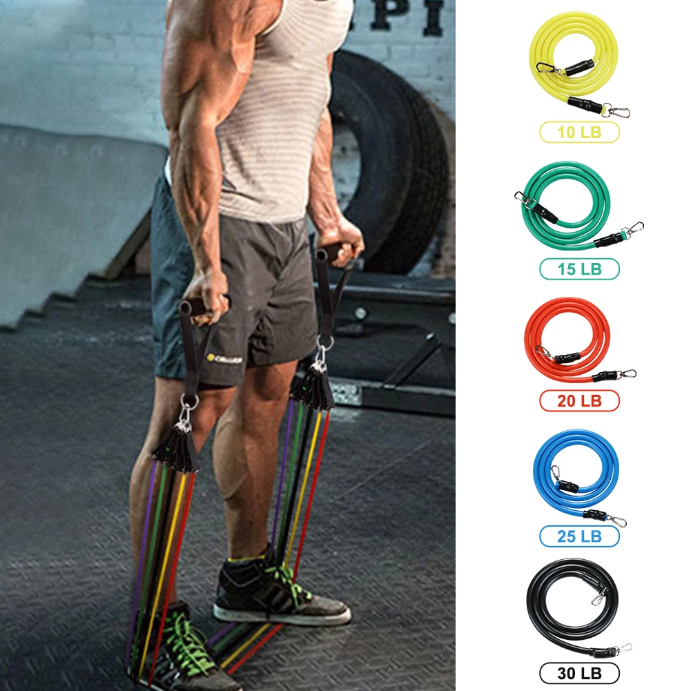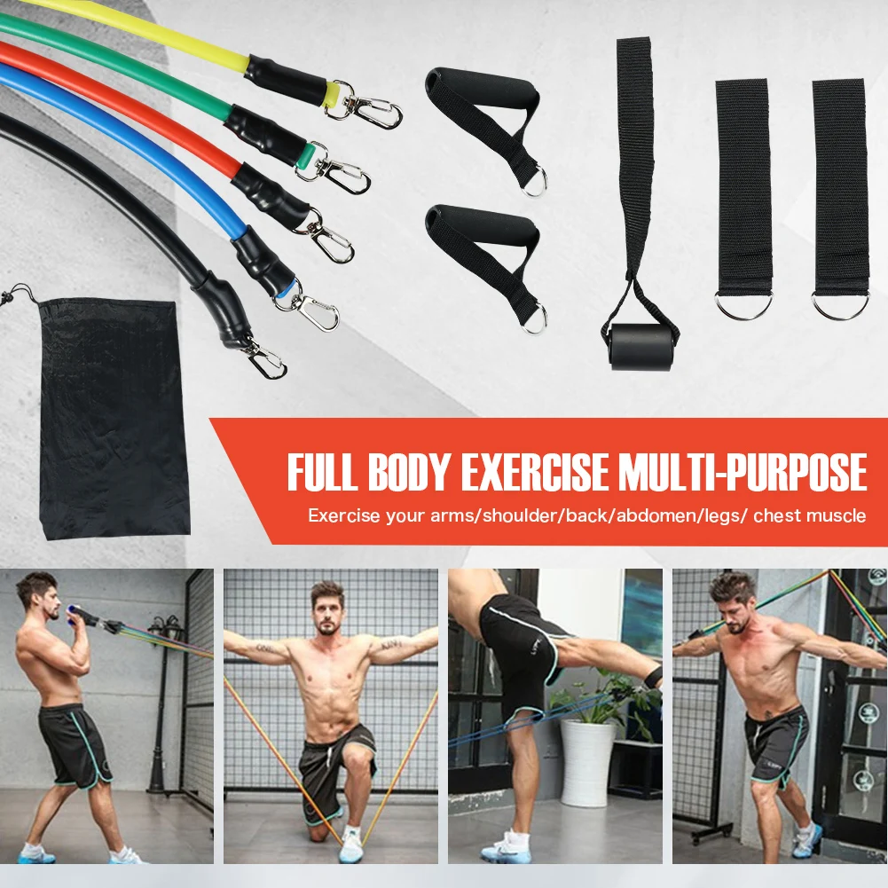 11 шт./компл. латексные резисторы для спортзала двери якорь лодыжки ремни с сумкой Набор для йоги упражнения фитнес-браслет резиновая петля трубки ленты