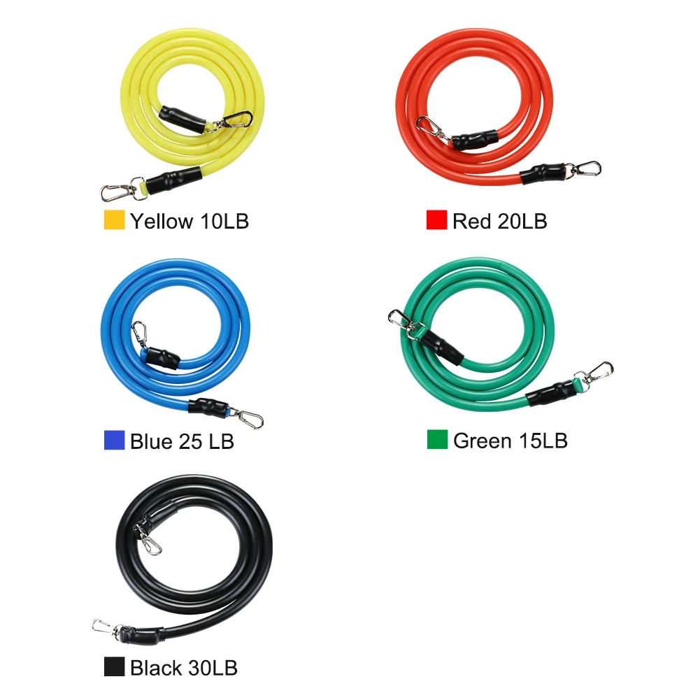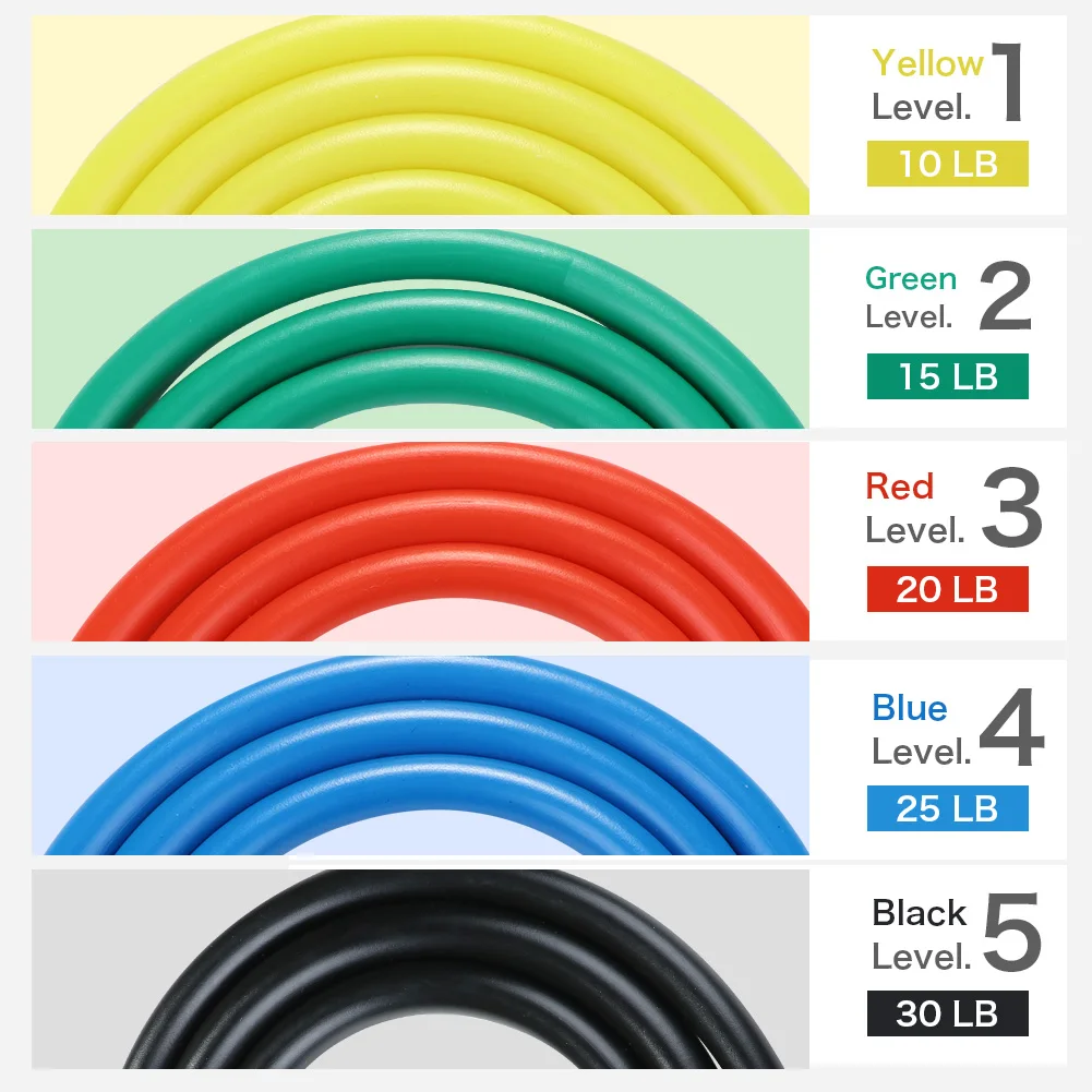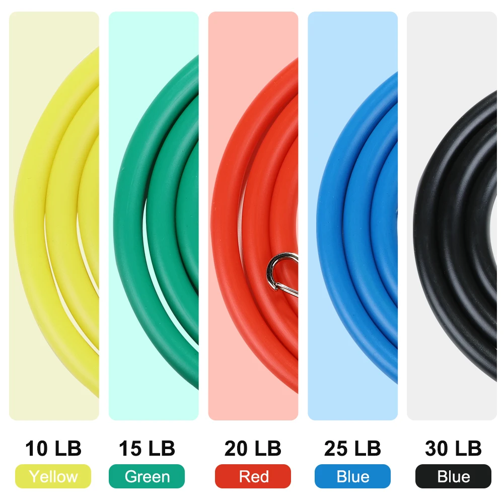 2. Есть пять различных размеров натяжных канатов, которые произведут в общей сложности 100 фунтов натяжения. Вы также можете настроить его в соответствии с вашими требованиями. Разные цвета натяжных канатов будут иметь разные фунты, включая 30 фунтов для черного, 25 фунтов для синего, 20 фунтов для зеленого, 15 фунтов для красного и 10 фунтов для желтого