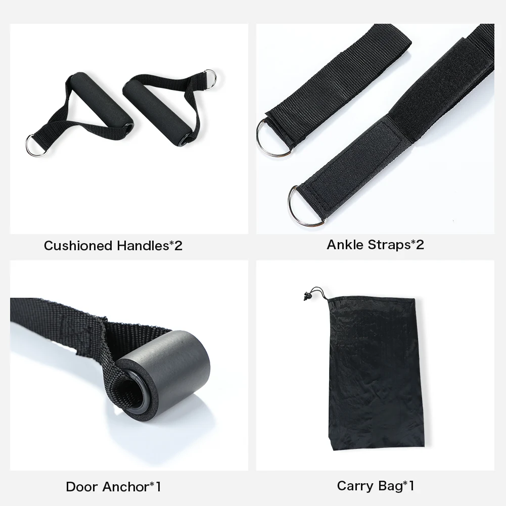 4. Этот продукт оснащен кольцом для ног, дверной пряжкой, ручкой и сумкой для хранения, которые могут выполнять различные упражнения и достигать различных результатов упражнений