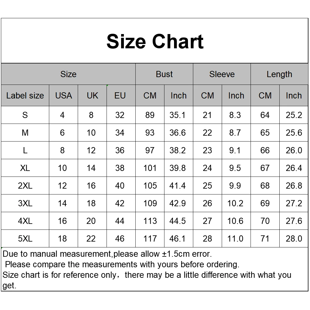 [Наш Размер 5XL] Обхват груди: 117 см/46,1 ", рукав: 28 см/11", Длина: 71 см/28 "(прибл.)