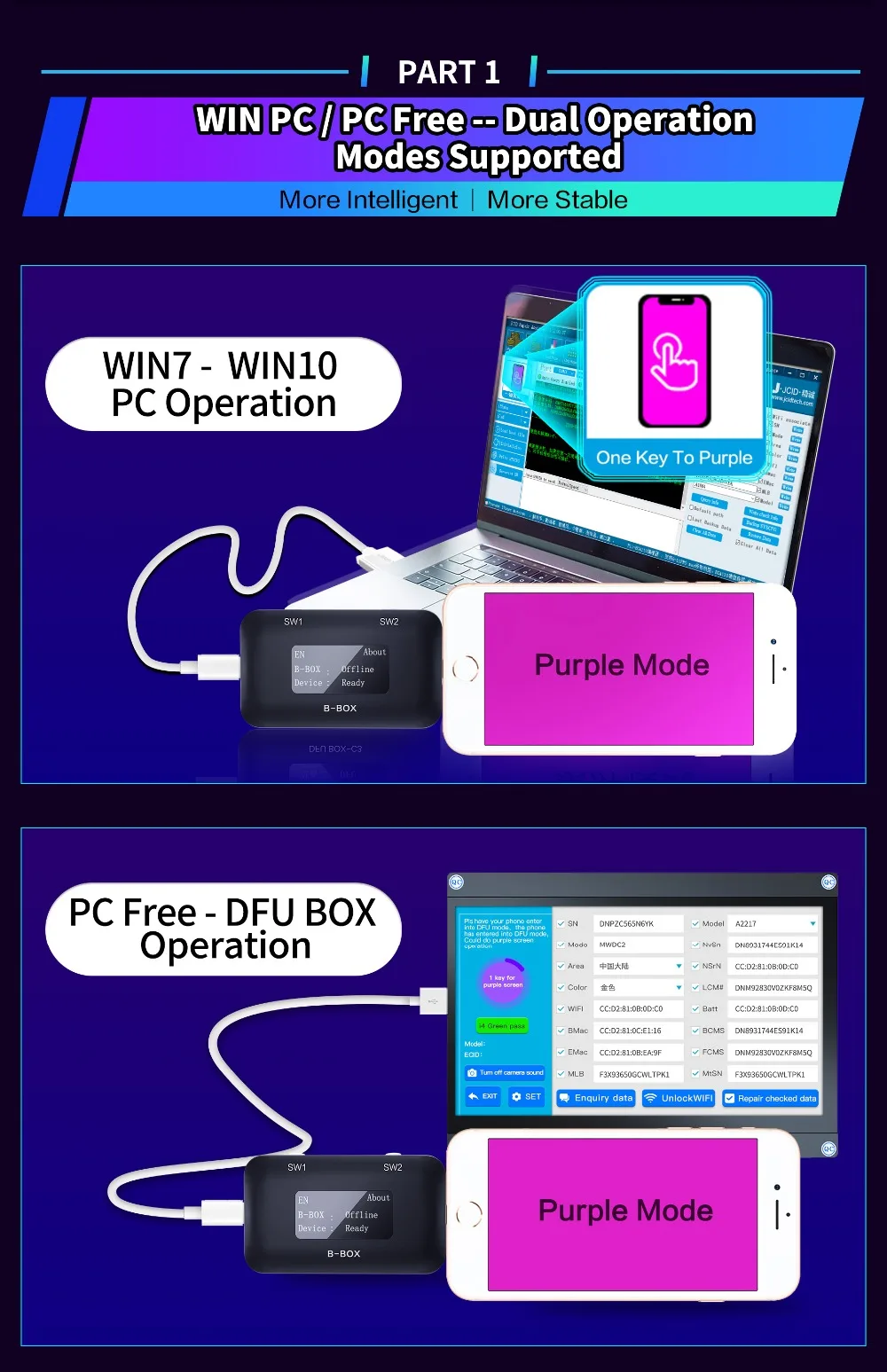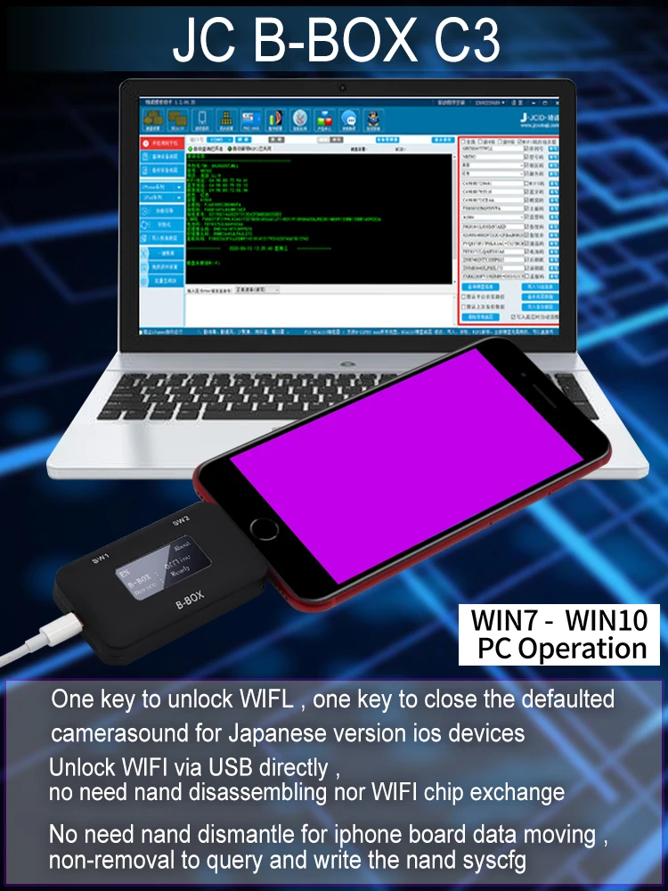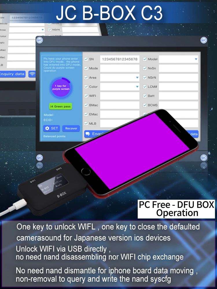 JC B-BOX DFU Черный инструмент для iOS A7-A11 один ключ фиолетовый режим