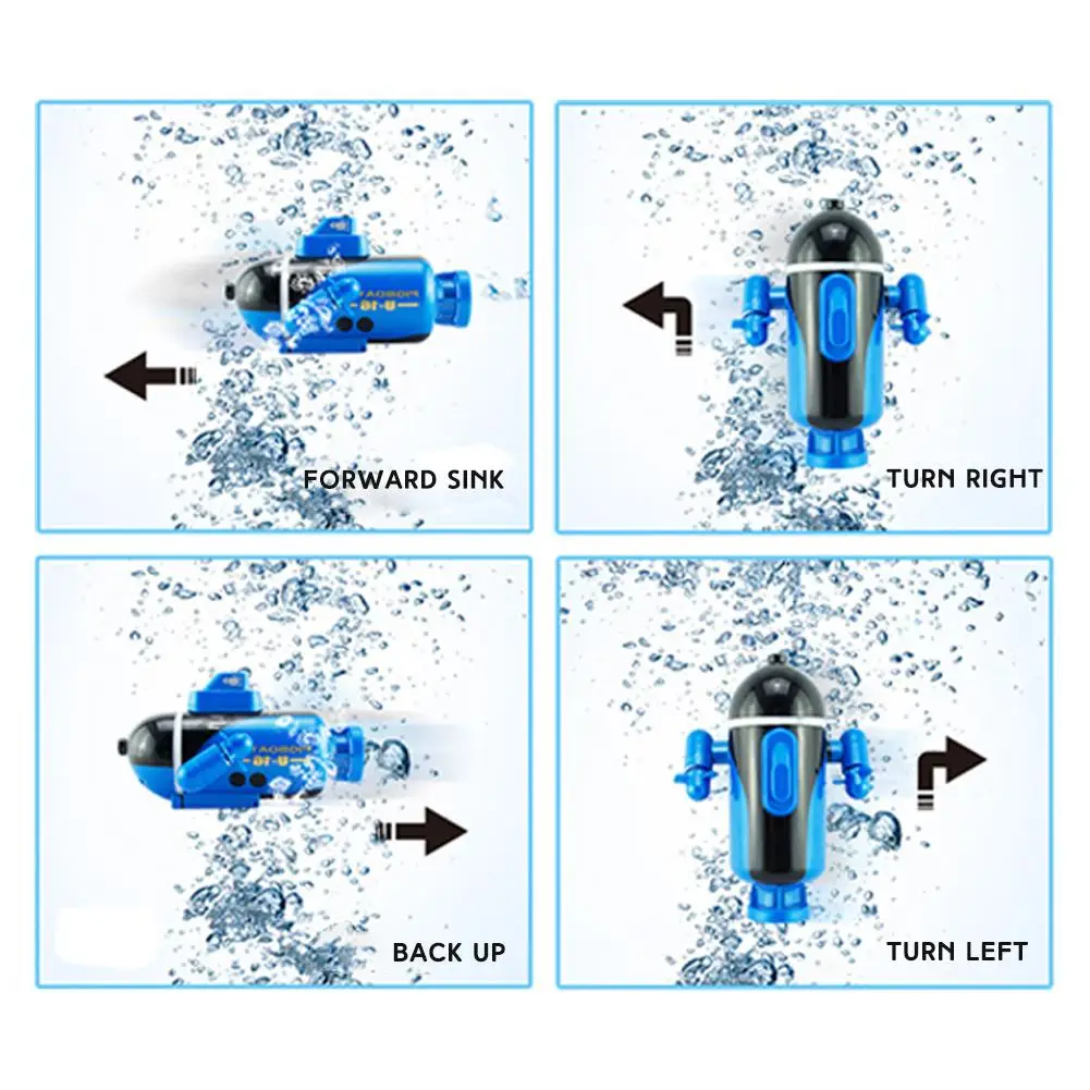 1. Простота в эксплуатации: электрическая водная лодка может действительно управляться водой, такой как аквариум и ванны. Просто нажмите кнопку дистанционного управления в руке, подводная лодка может гибко двигаться вперед, назад, поворачивать налево и поворачивать направо, чтобы наслаждаться неограниченным весельем!Характеристики: