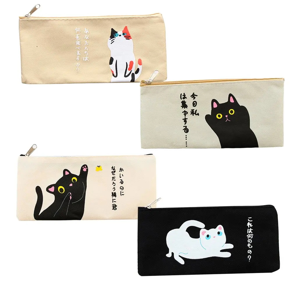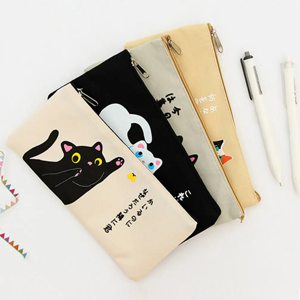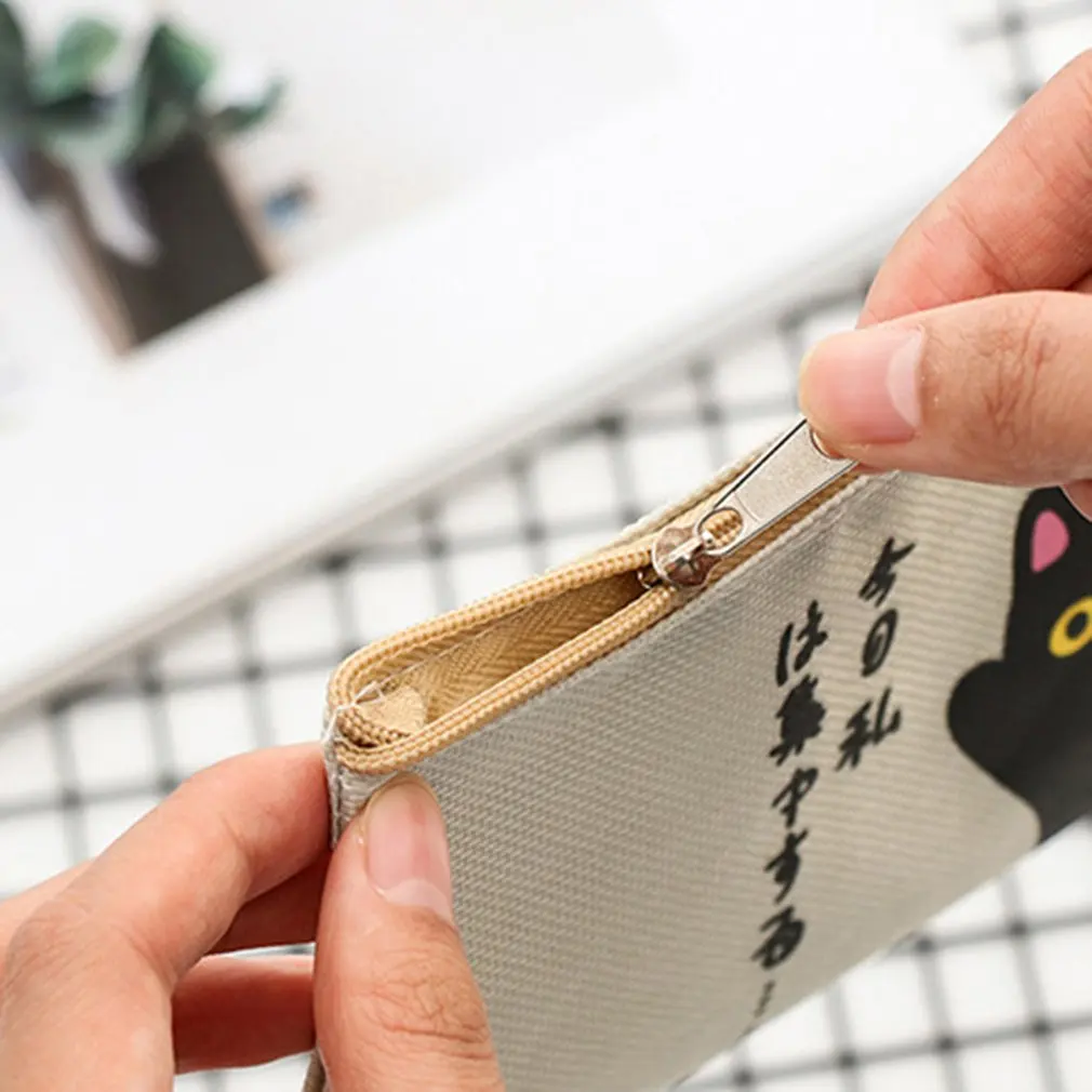 Милый чехол-карандаш с рисунком кота, креативный чехол-карандаш из парусины с рисунком, вместительная коробка на молнии, изысканное мастерство, аккуратные линии |