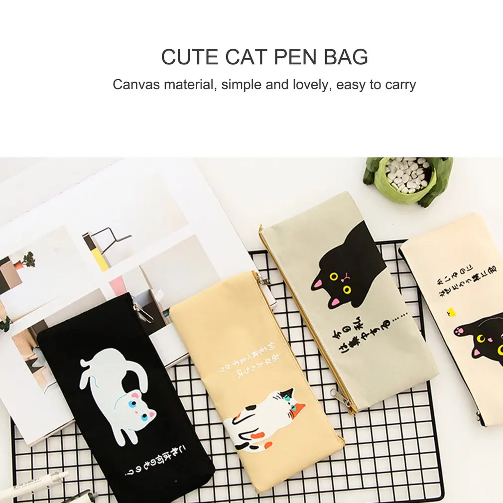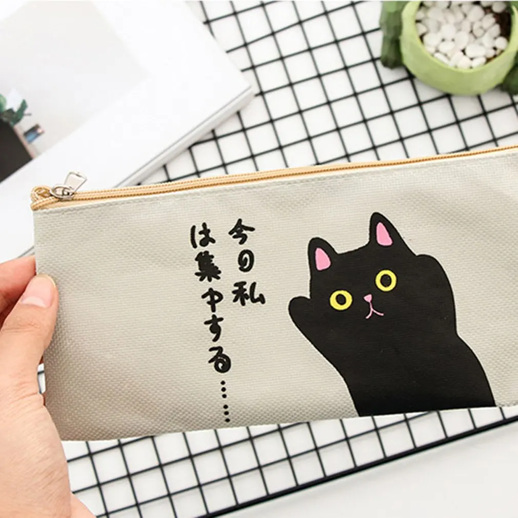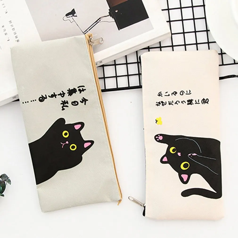 Милый чехол-карандаш с рисунком кота, креативный чехол-карандаш из парусины с рисунком, вместительная коробка на молнии, изысканное мастерство, аккуратные линии |